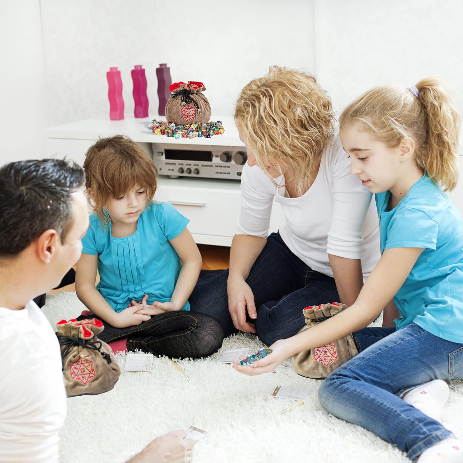 - 【Big Capacity】: The dnd dice storage bag has a round base about 7.5 inches in diameter and 4.7 inches tall, and the round opening about 11.8 inches in diameter. Are you still worried about how to storage your large number of dice? This large dice bag can easily hold over 200 dices, so please have it with confidence.