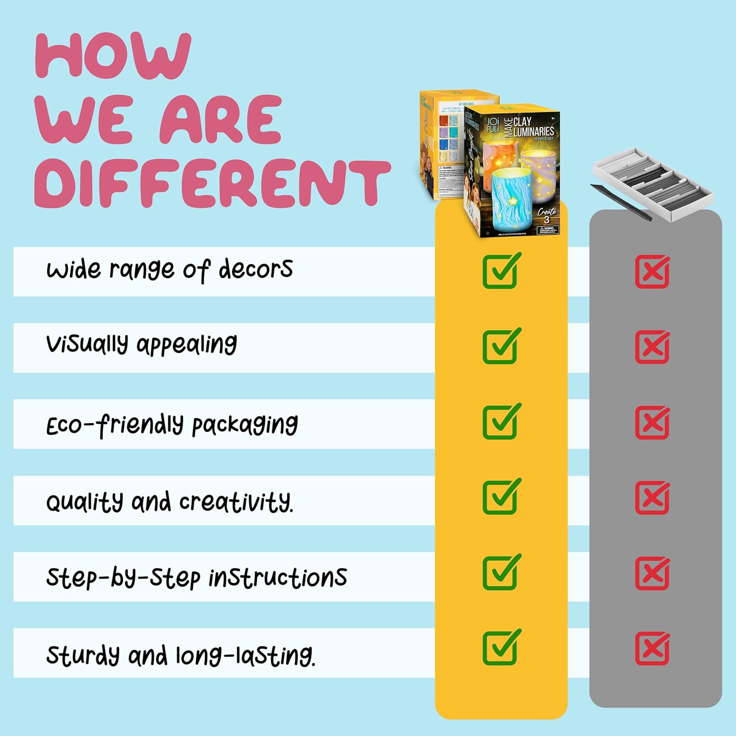 - Expressive Art And Crafts: Choose from 15 vibrant clay colors to design and personalize your luminaries. Mix, knead, and swirl the clay to craft one-of-a-kind designs. Ideal craft clay kit for kids ages 8-12 and up to spark creativity and artistic expression.