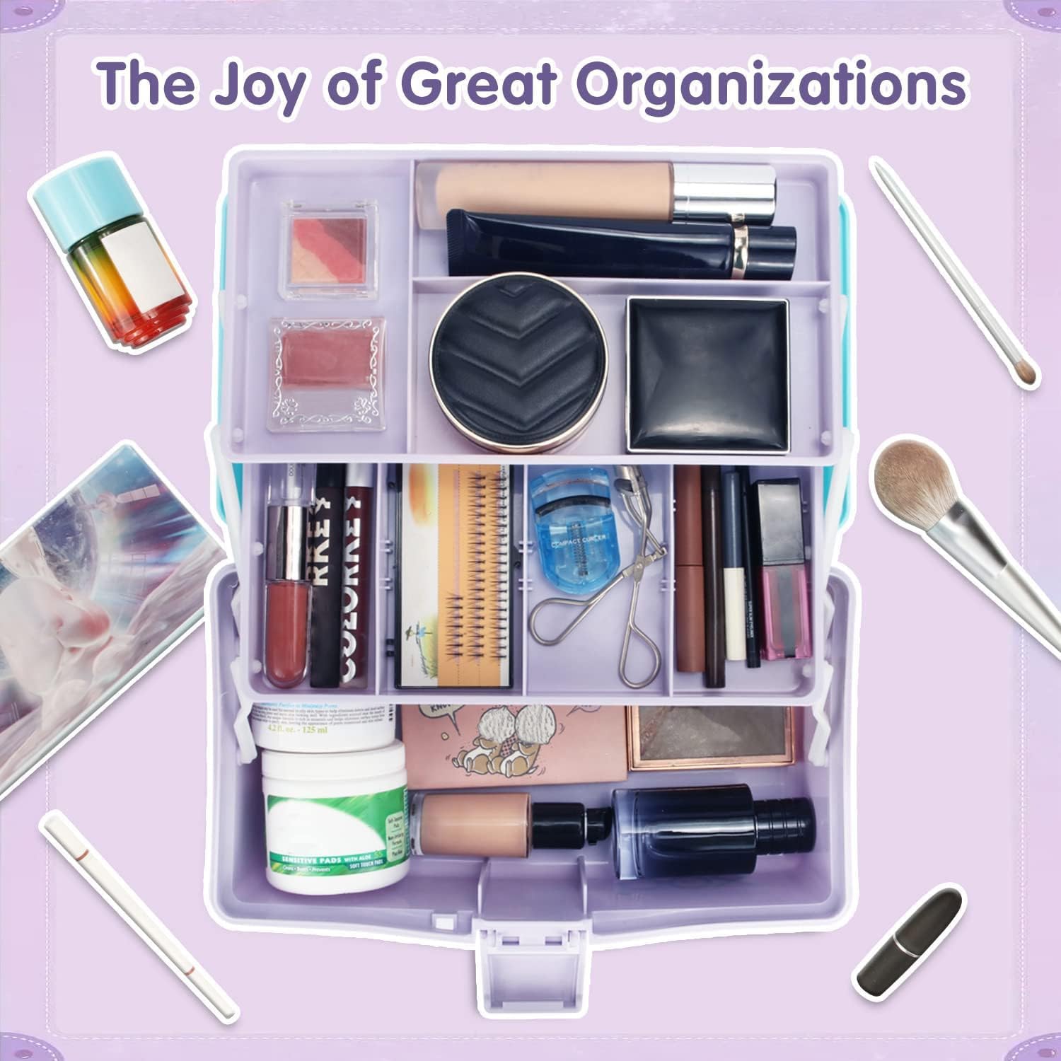 12in Three-Layer Multipurpose Storage Box Organizer Folding Tool Box/Art & Crafts Case/Sewing Supplies Organizer/Medicine Box/Family First Aid Box with 2 Trays (Purple Blue)