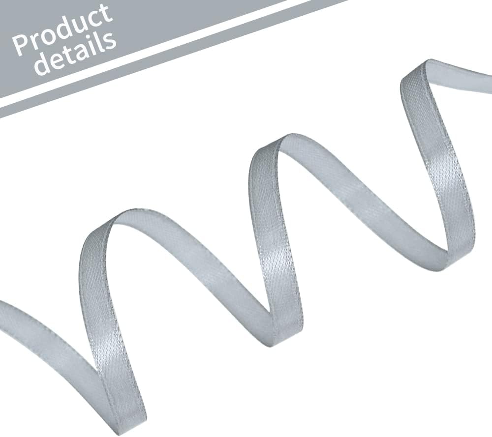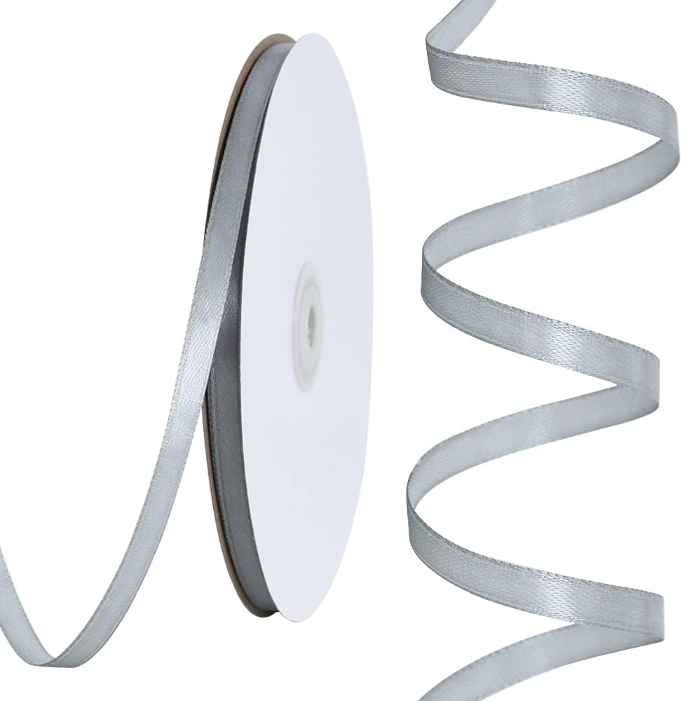 TONIFUL 1/4 Inch x 100yds Silver Satin Ribbon, Thin Solid Color Satin Ribbon for Gift Wrapping, Crafts, Hair Bows Making, Wedding Party Decoration, Invitation Cards, Floral Bouquets