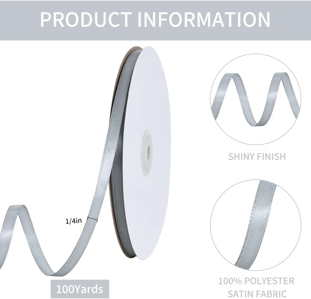 - 【1/4 INCH SATIN RIBBON】:High grade single face solid satin ribbons, 1/4 inch(6mm)wide and come in a convenient 100 yards(91m)packages. Perfact enough length to meet your needs.