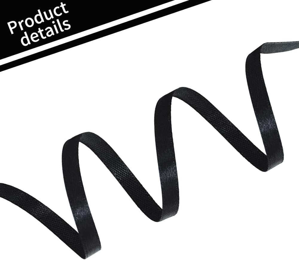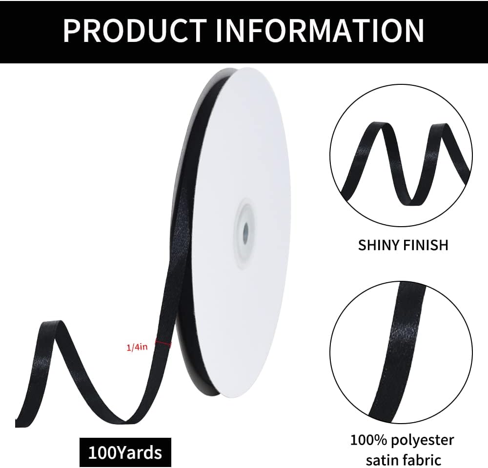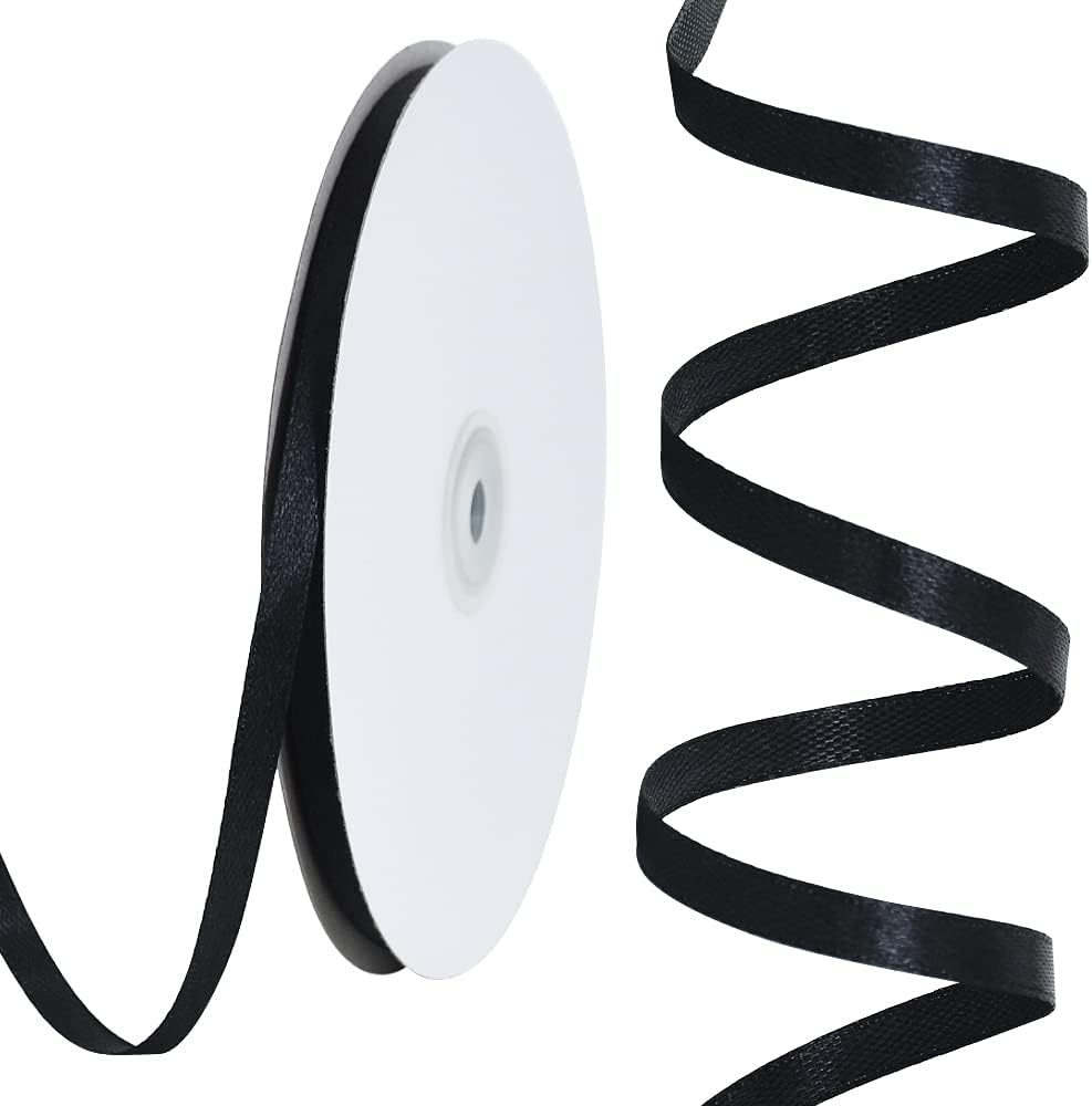 TONIFUL 1/4 Inch x 100yds Black Satin Ribbon, Thin Solid Color Satin Ribbon for Gift Wrapping, Crafts, Hair Bows Making, Wedding Party Decoration,Halloween, Floral Bouquets