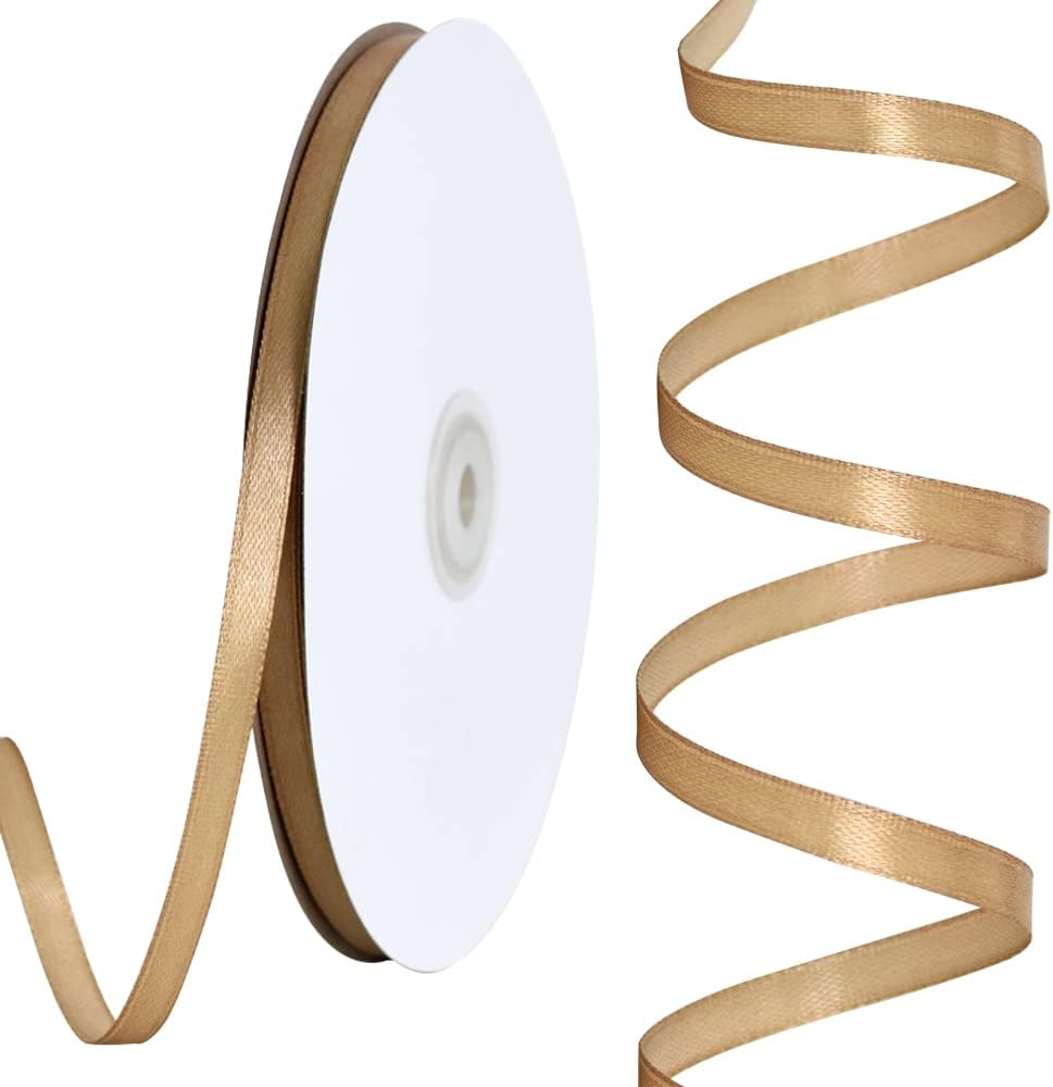 TONIFUL 1/4 Inch x 100yds Gold Satin Ribbon, Thin Solid Color Satin Ribbon for Gift Wrapping, Crafts, Hair Bows Making, Wedding Party Decoration, Invitation Cards, Floral Bouquets