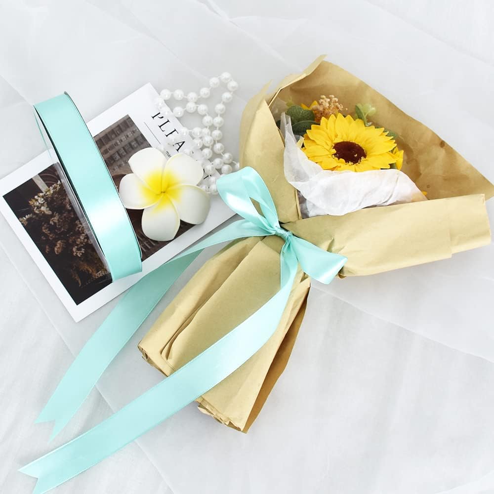 TONIFUL 1 Inch x 100yds Teal Turquoise Blue Satin Ribbon, Thin Solid Color Satin Ribbon for Gift Wrapping, Crafts, Hair Bows Making, Wedding Party Decoration, Invitation Cards, Floral Bouquets