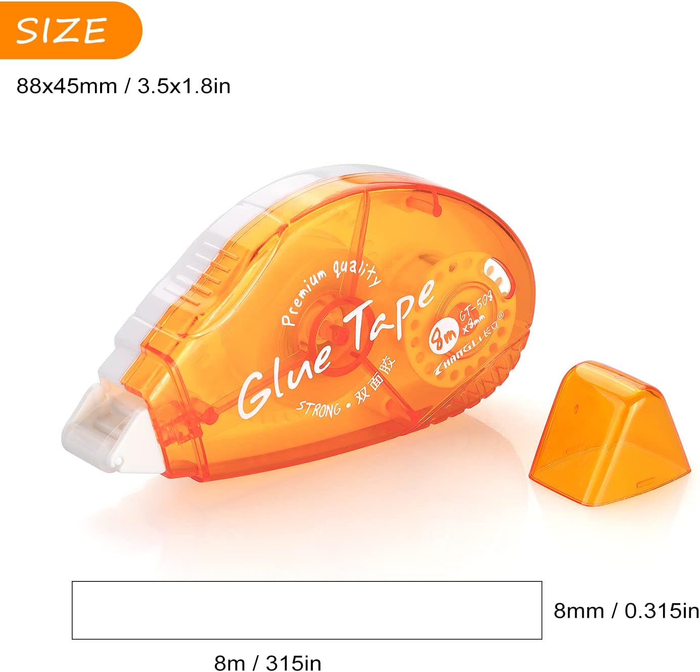 - Each dispenser holds 0.31 x 315 inch (8mm x 8m) of double sided tape.