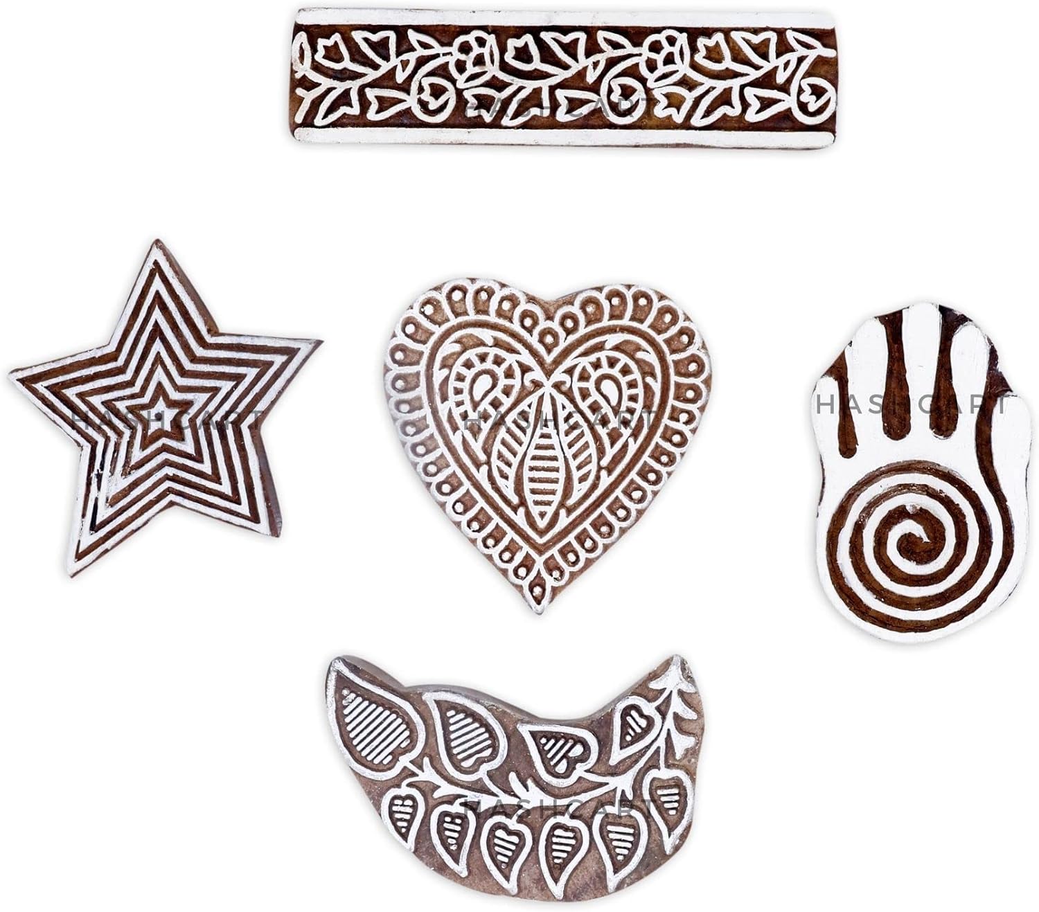 Wooden Block Stamp Hand Carved Printing Stamp for Fabric Printing - Wooden Printing Block for Scrapbooking Pottery Kids Project, to Decorate Card | Set of 5 | HASHCART®