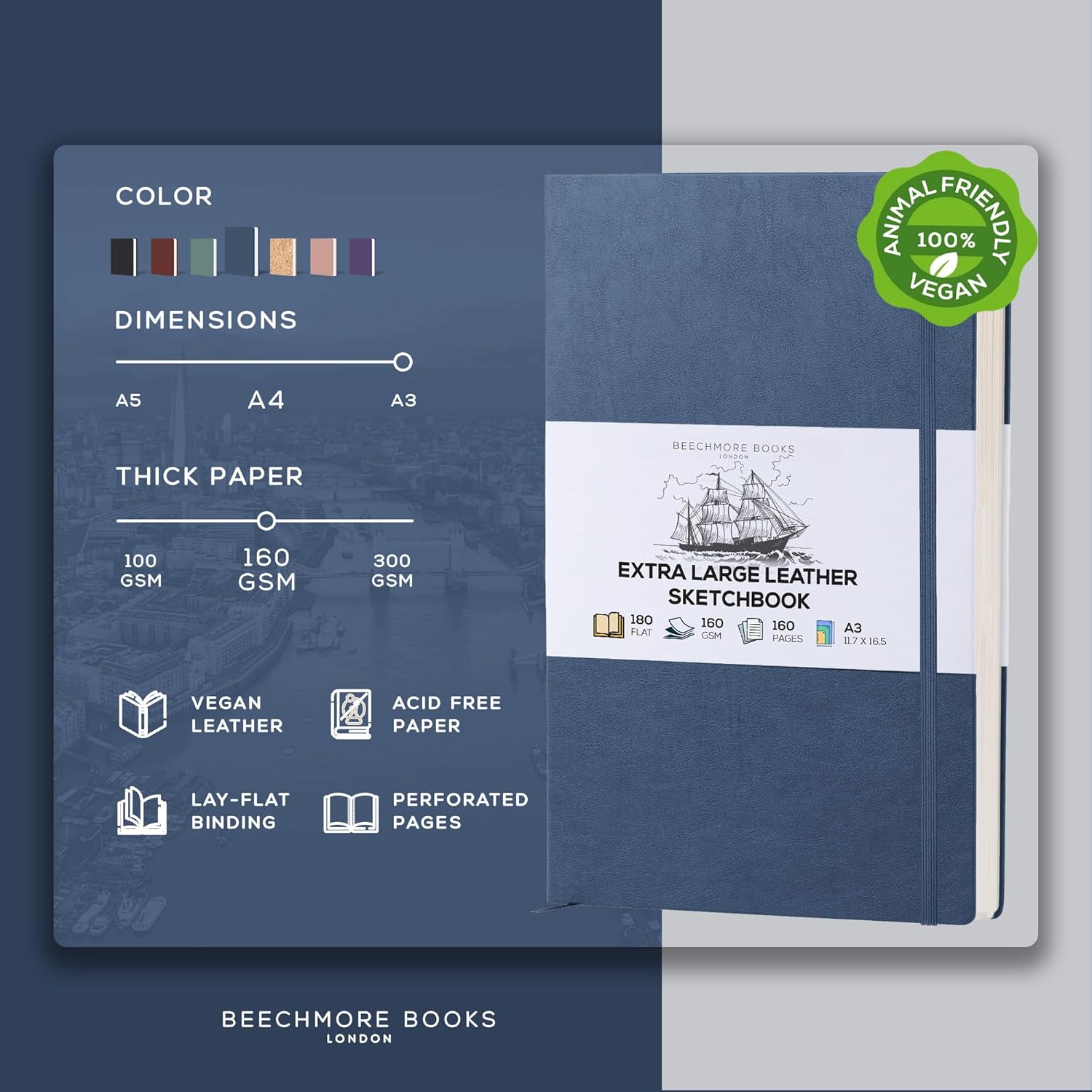 - Elegant & Durable Construction - Built to last with a robust vegan leather hardcover and thread-binding, this A3 Extra large sketchbook combines timeless British-inspired design with lasting reliability for your artistic vision.