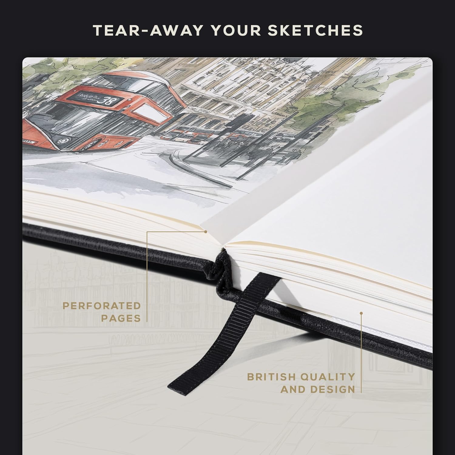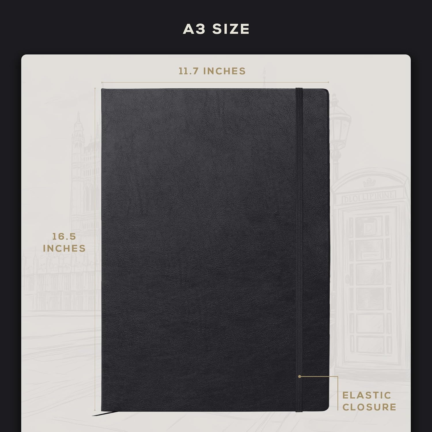 - Elegant & Durable Construction - Built to last with a robust vegan leather hardcover and thread-binding, this A3 Extra large sketchbook combines timeless British-inspired design with lasting reliability for your artistic vision.