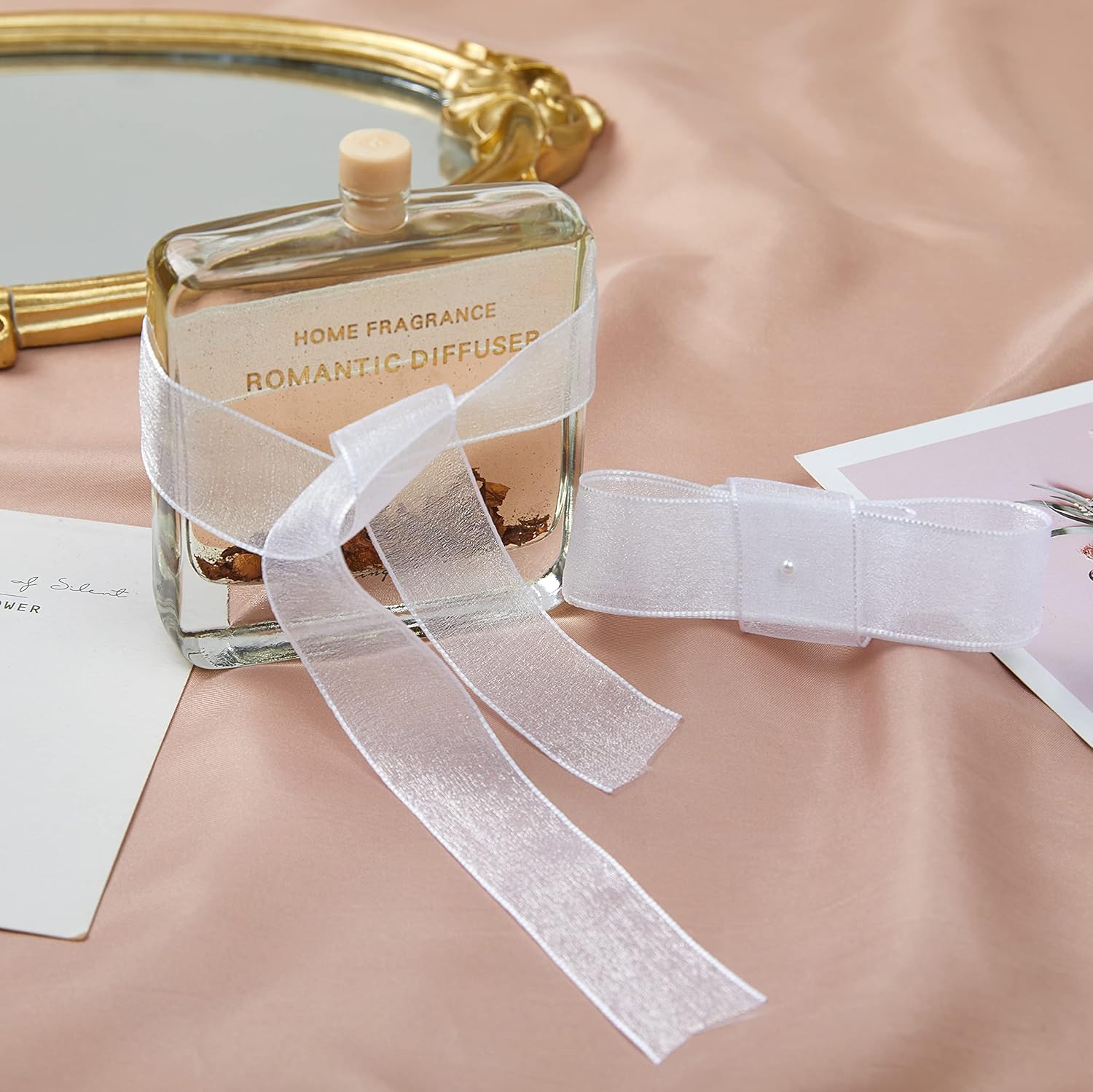 - ◾Product description: Size 1 inch, length about 25 yards. It is made of high-quality pearl silk, developed by Italian design team and produced by Swiss machine. Spread out like a dot of starlight embellishment.
