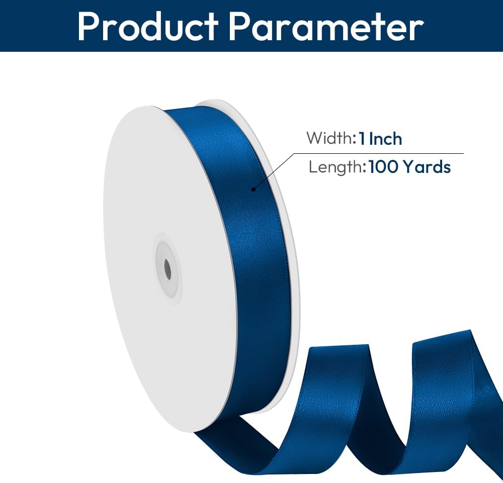 - 【Ample Length for Your Craft】1 inch navy satin ribbon is 100 Yds long, providing ample material for all your crafting needs such as wedding invitations, sewing, hair bows, flower bouquet supplies, lei making, homecoming mum accessories, and more.