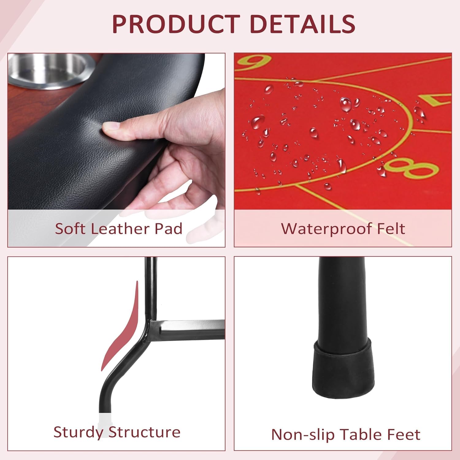 - DURABLE & STABLE CONSTRUCTION: Made of durable MDF material, steel frame and premium thicker steel tube, this poker table can support you for long-term use. The upgrade poker table does not require adjustment of steel wires, reducing operational troubles and being more sturdy than old one.