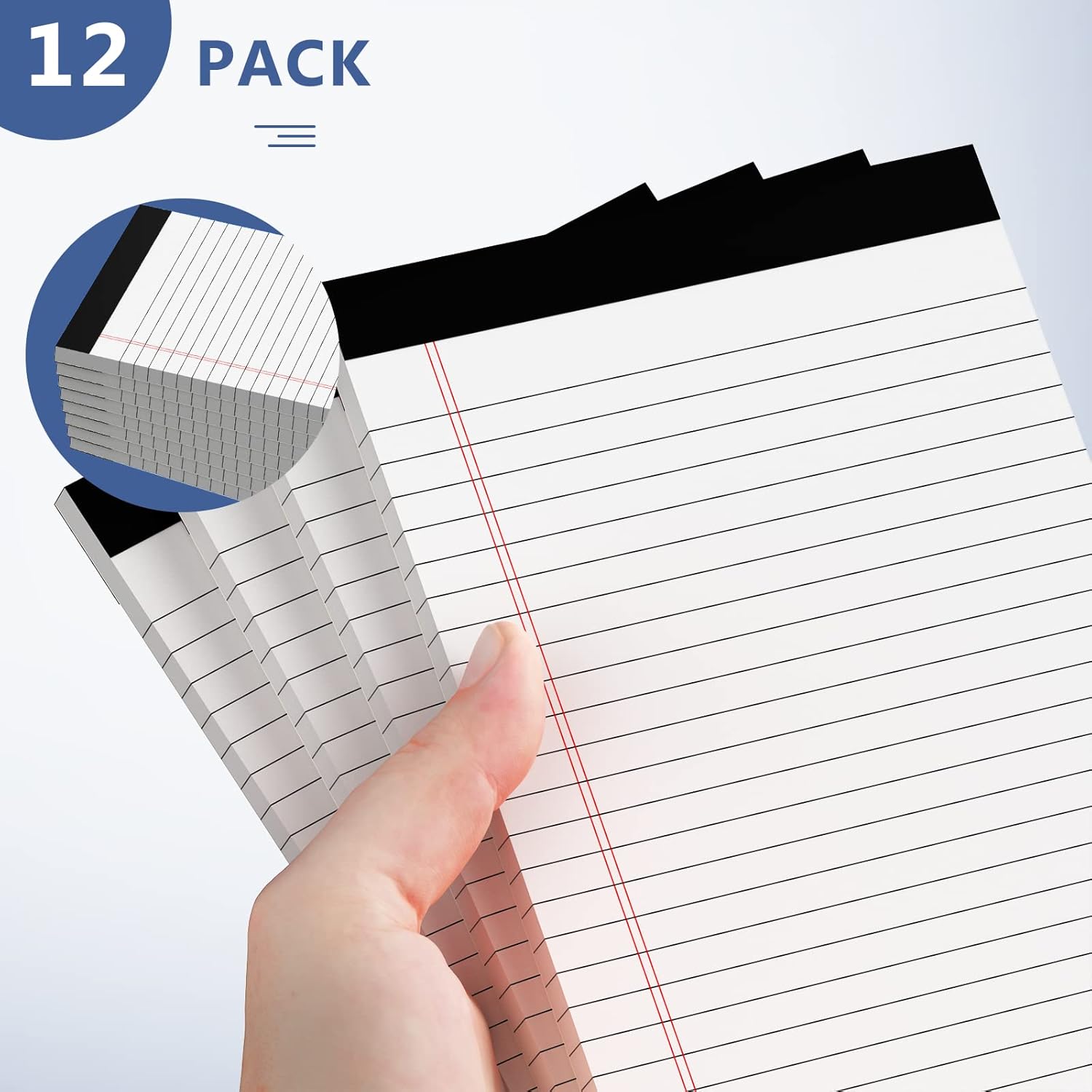 5" x 8" Note Pads 12 Pack of Legal Pads 30 Sheets Notepad College Ruled Small Writing Pads Perforated Pages Paper Pads 80GSM Heavyweight Paper Note Pads for Home, Office, or School