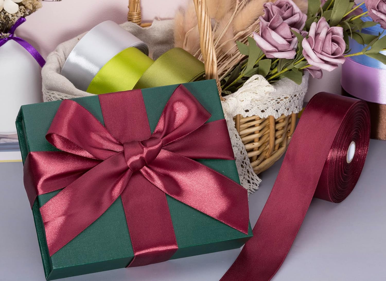 - Versatile ribbon, wide range of applications, especially for gift box packaging, invitations, floral design, handmade roses, festival and party decorations, baking packaging, bouquet ribbons, crafts, and more creative design