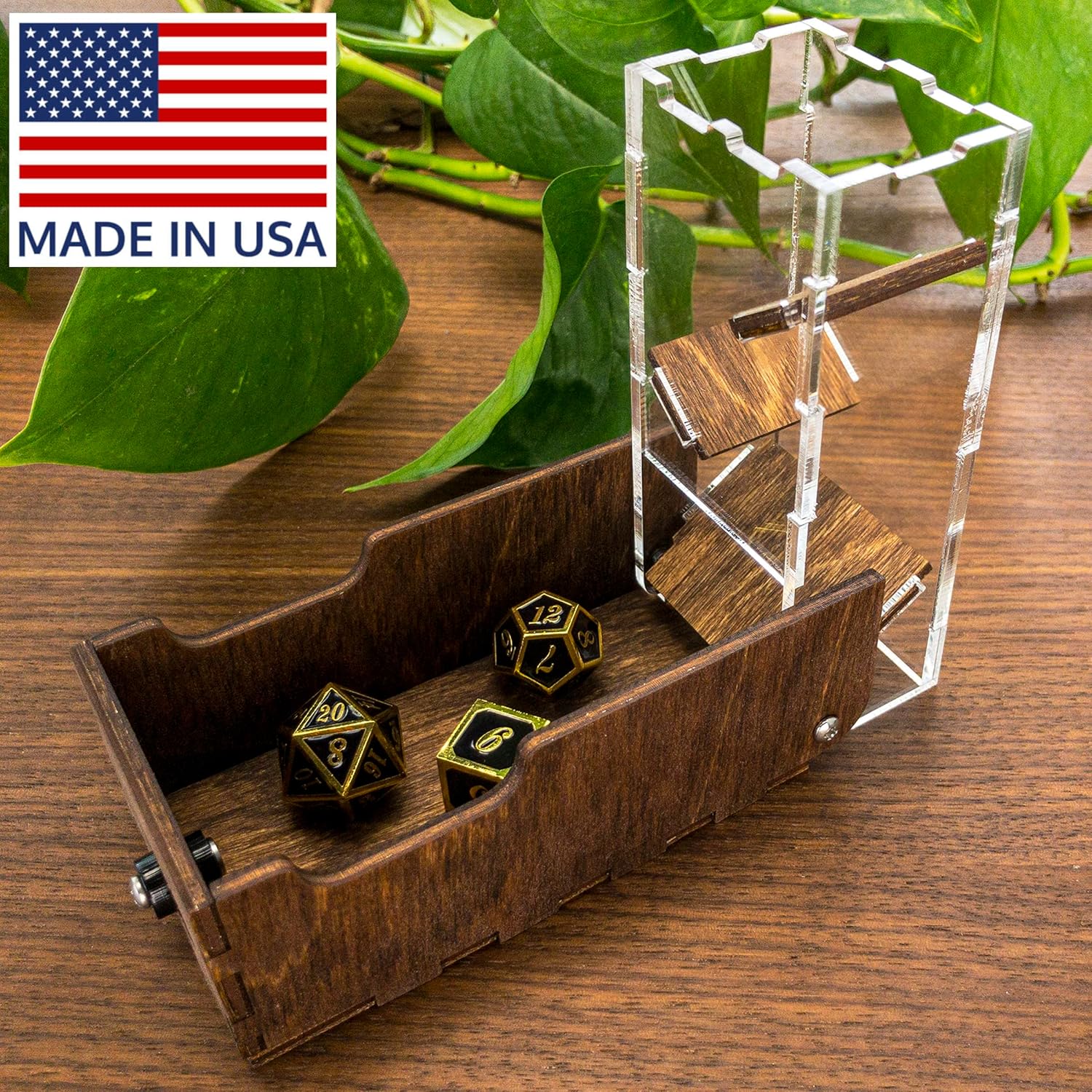 C4Labs Micro Travel Portable Dice Tower and Dice Vault | Fits Standard Seven Set of Dice (Walnut)