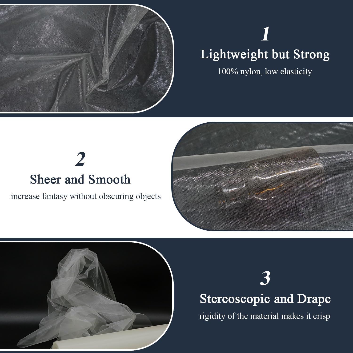 - Versatile Fabric for DIY: It is a very decorative fabric, perfect for creating light skirts, table runner, sheer curtains, veils, capes, sashes. Great for evening wear and home decor, used for prom dresses and holiday party decorations.