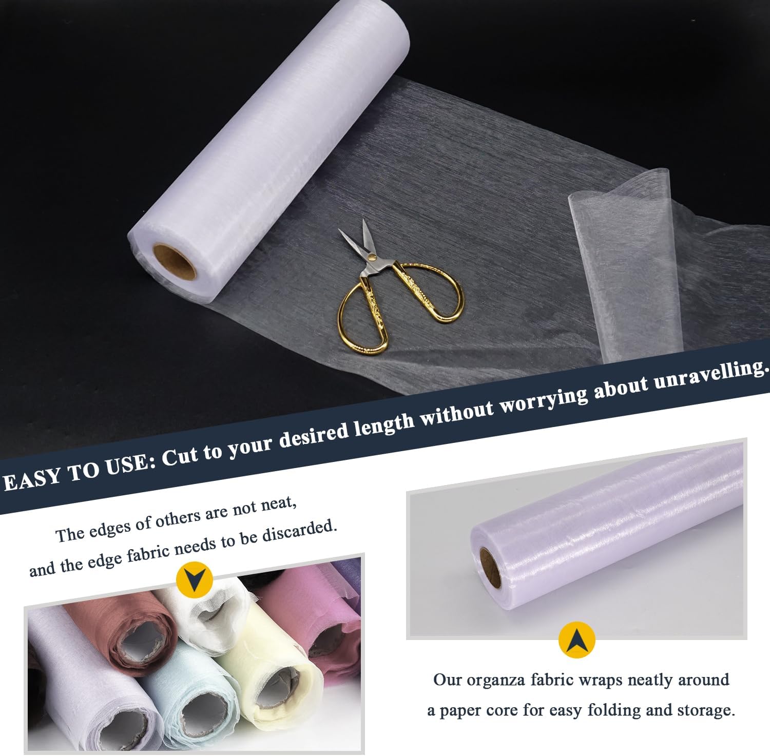 - Convenient to Store and Use: Cut it freely according to the length you want, and the edges will not unravel. The organza fabric wraps neatly around a paper core for easy folding and storage. It can still maintain its bright original color after repeated use.