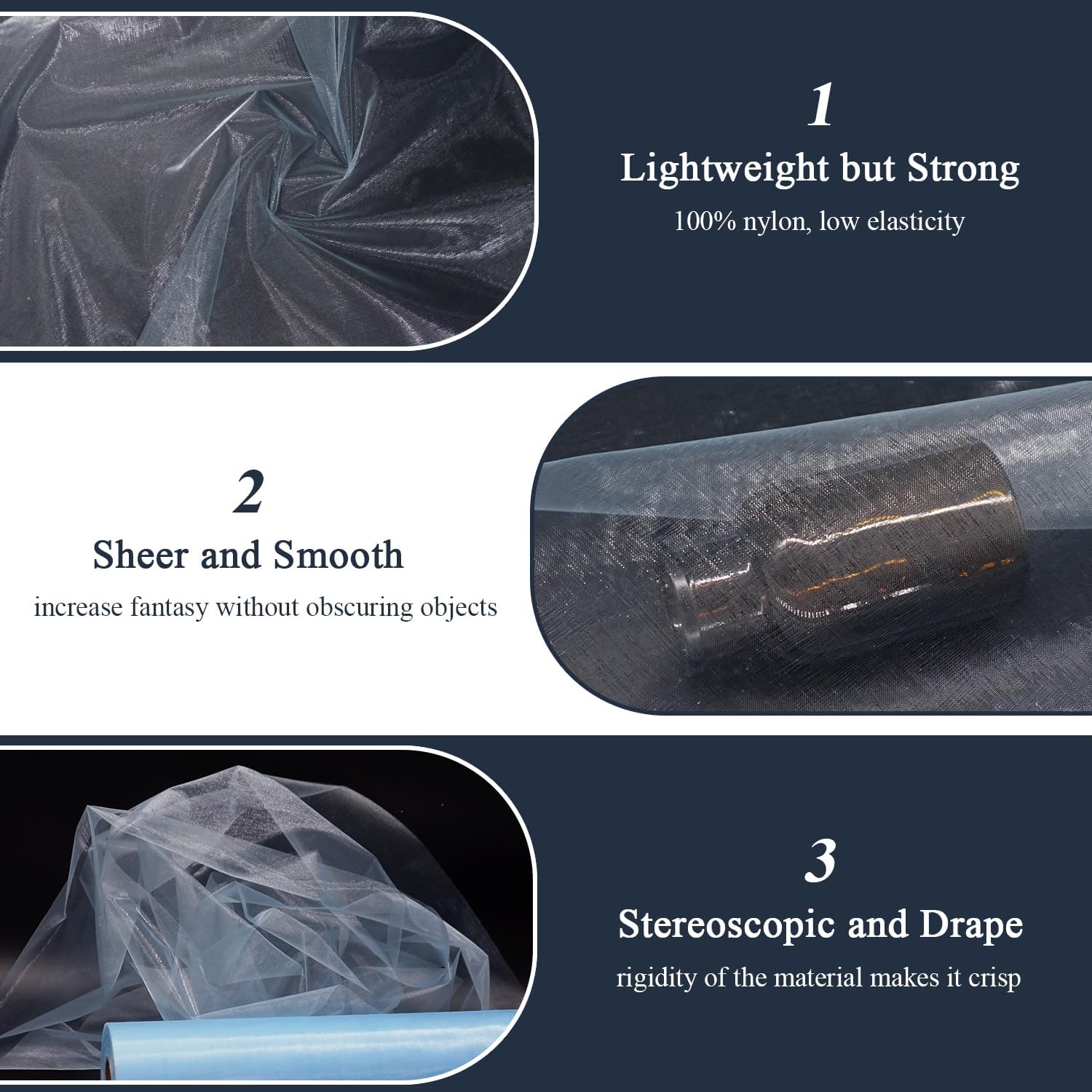 - Versatile Fabric for DIY: It is a very decorative fabric, perfect for creating light skirts, table runner, sheer curtains, veils, capes, sashes. Great for evening wear and home decor, used for prom dresses and holiday party decorations.