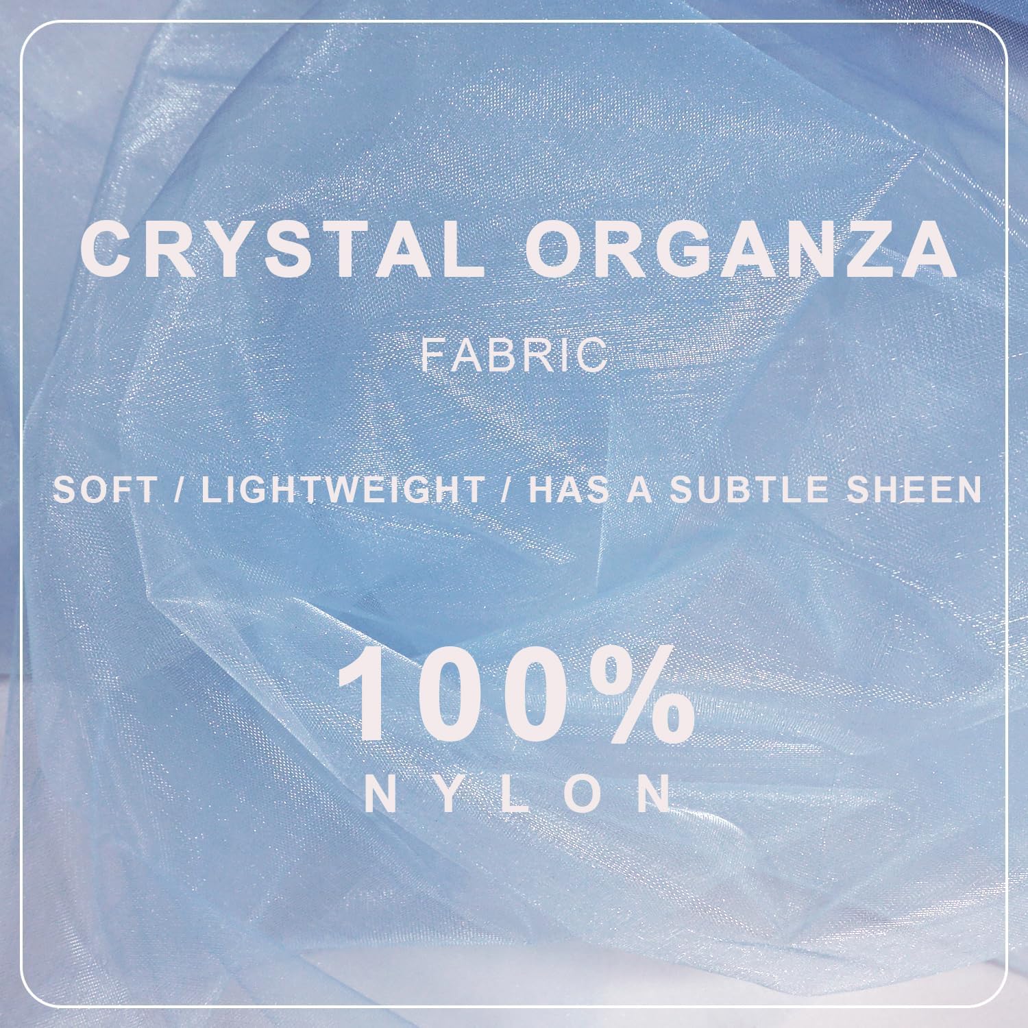 - Lightweight but Strong: Crystal organza is made of nylon with low elasticity. Thin, translucent, smooth, soft, fine texture. The rigidity of the material makes it crisp, bringing stereoscopic and drape. Sheer fabric creates a full silhouette that looks great both in reality and in photos.