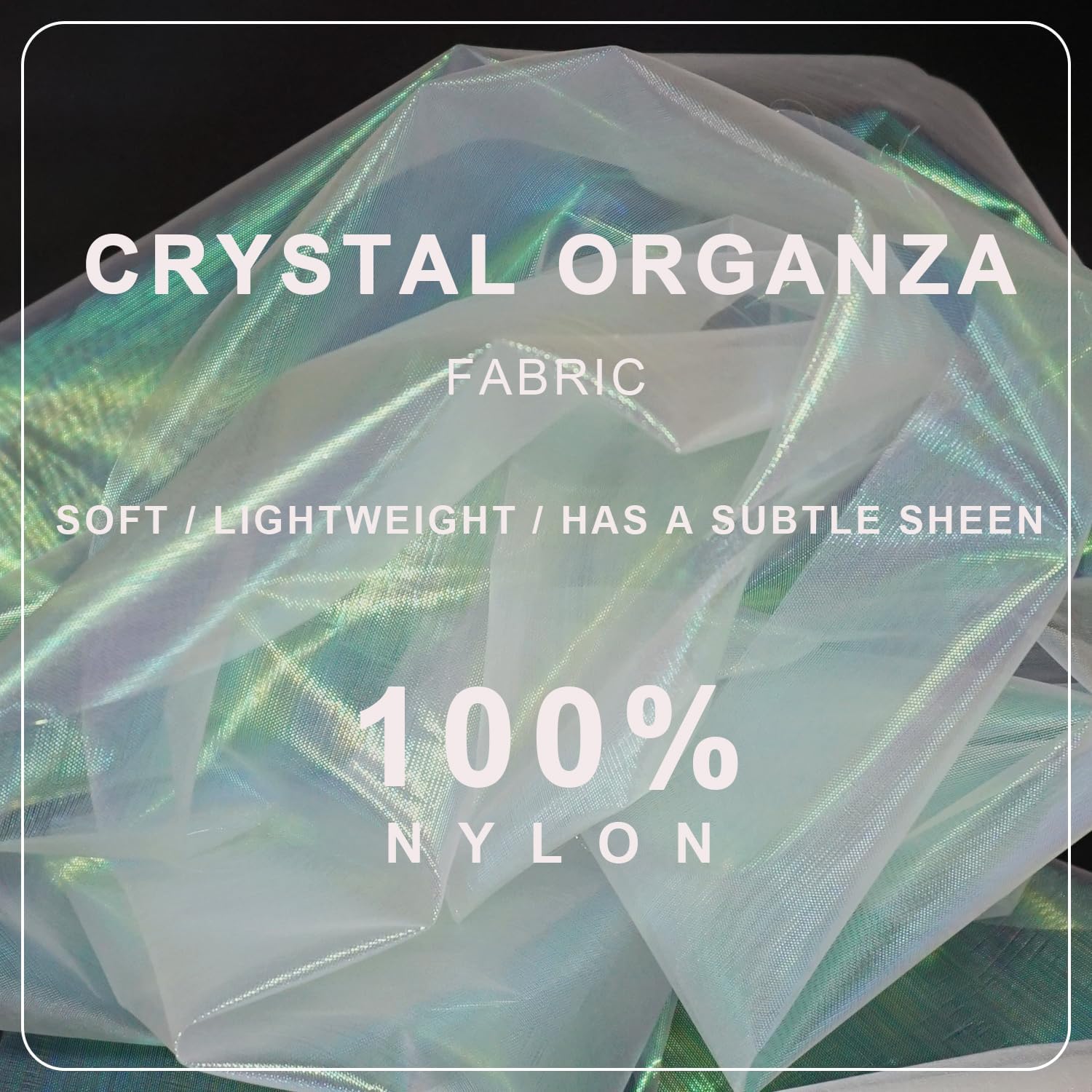 - Lightweight but Strong: Crystal organza is made of nylon with low elasticity. Thin, translucent, smooth, soft, fine texture. The rigidity of the material makes it crisp, bringing stereoscopic and drape. Sheer fabric creates a full silhouette that looks great both in reality and in photos.