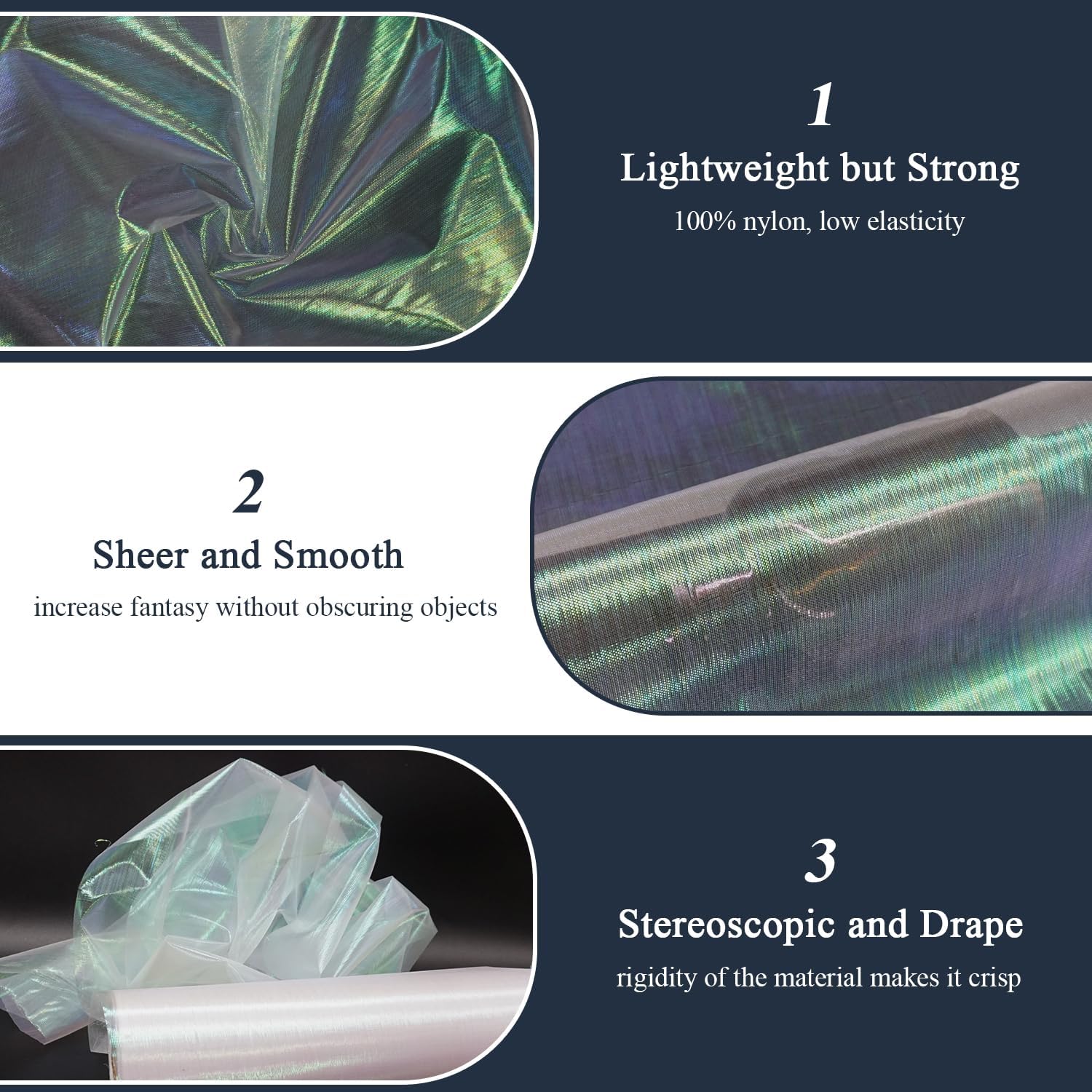 - Versatile Fabric for DIY: It is a very decorative fabric, perfect for creating light skirts, table runner, sheer curtains, veils, capes, sashes. Great for evening wear and home decor, used for prom dresses and holiday party decorations.