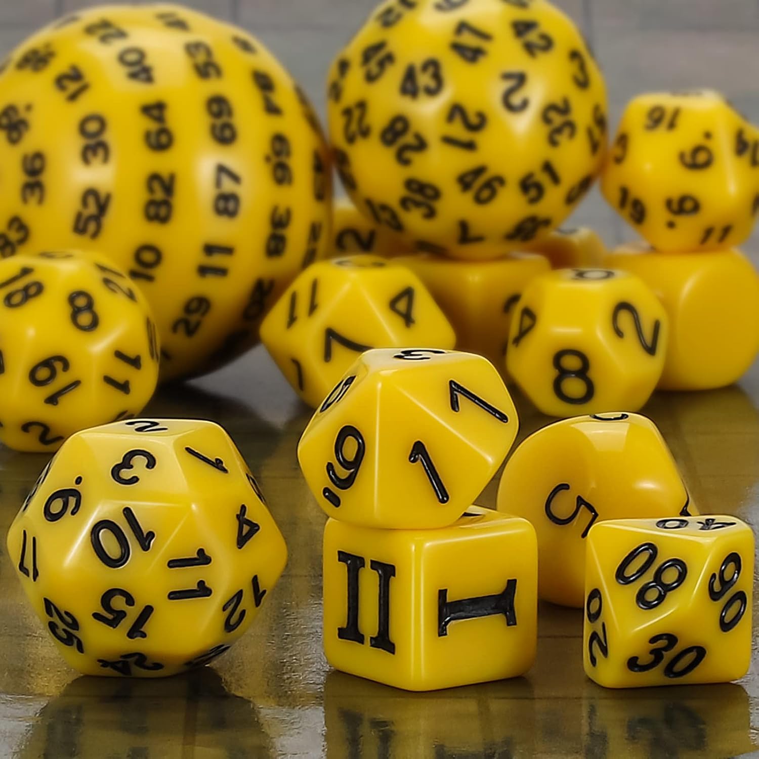 CiaraQ DND Polyhedral Dice Set (15pcs) D4-D100 Game Dice with Dice Bag for Dungeons and Dragons Role Playing Table Games (Yellow & Black)