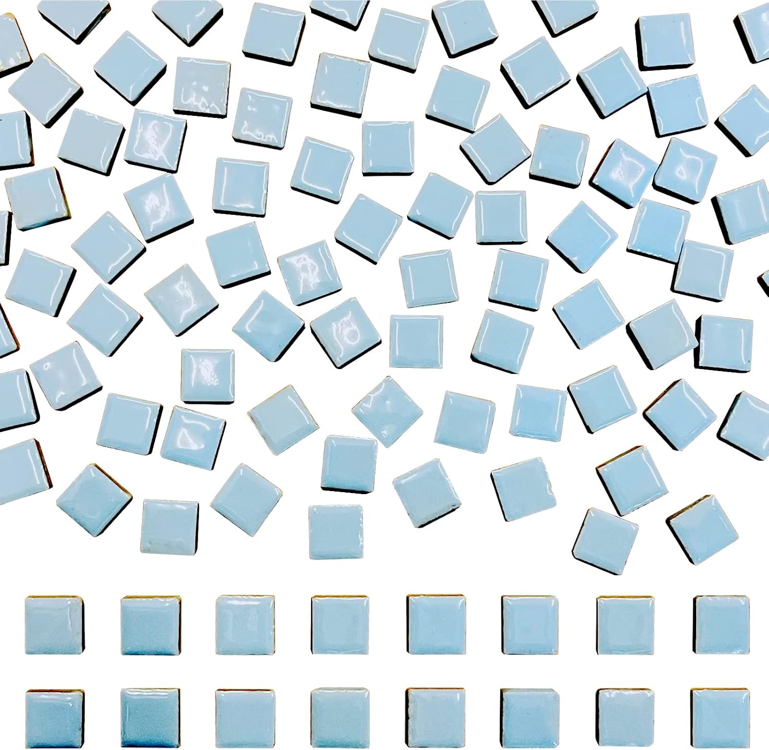 100 Pieces Ceramic Mosaic Tiles 3/5" Square Shapes Mosaic Ceramic Pieces Stained Ceramic Tiles Supplies for Crafts Beginner Mosaic Project Stepping Stones Mosaic Birdhouse Decor - Light Blue