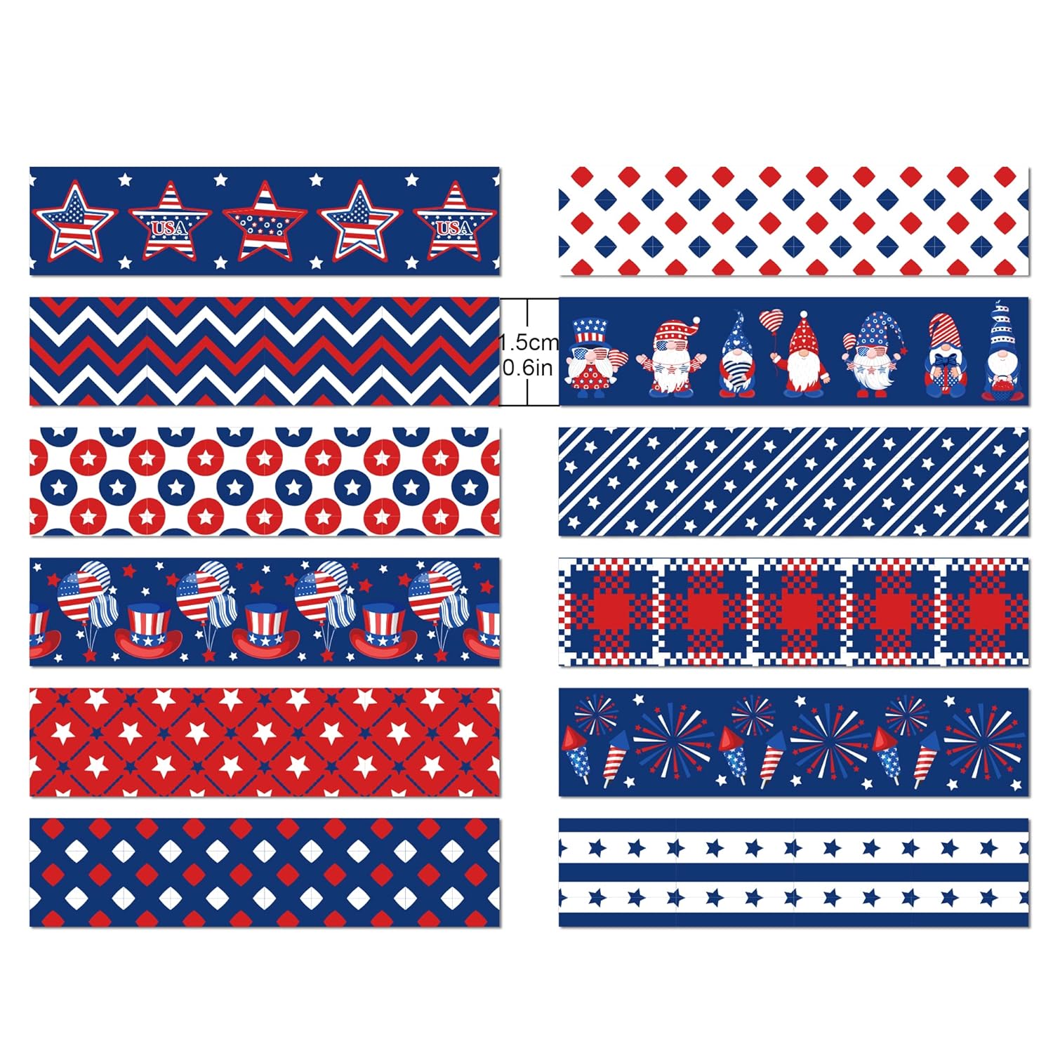 - What you Get: 12 rolls of USA theme washi tape with different styles. Buy with peace of mind! If you receive the goods have any do not like, or product the problem, we will provide you with a return service, you can contact us by e-mail
