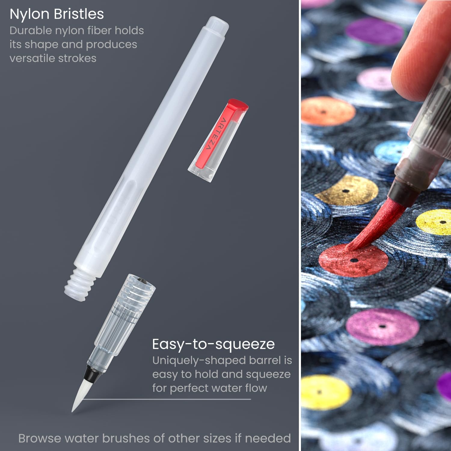 - Includes Water Brush for Easy Painting. Comes with a refillable water brush—no cup needed. Just squeeze gently to blend colors, layer transparently, or reactivate dry pigment on the go.