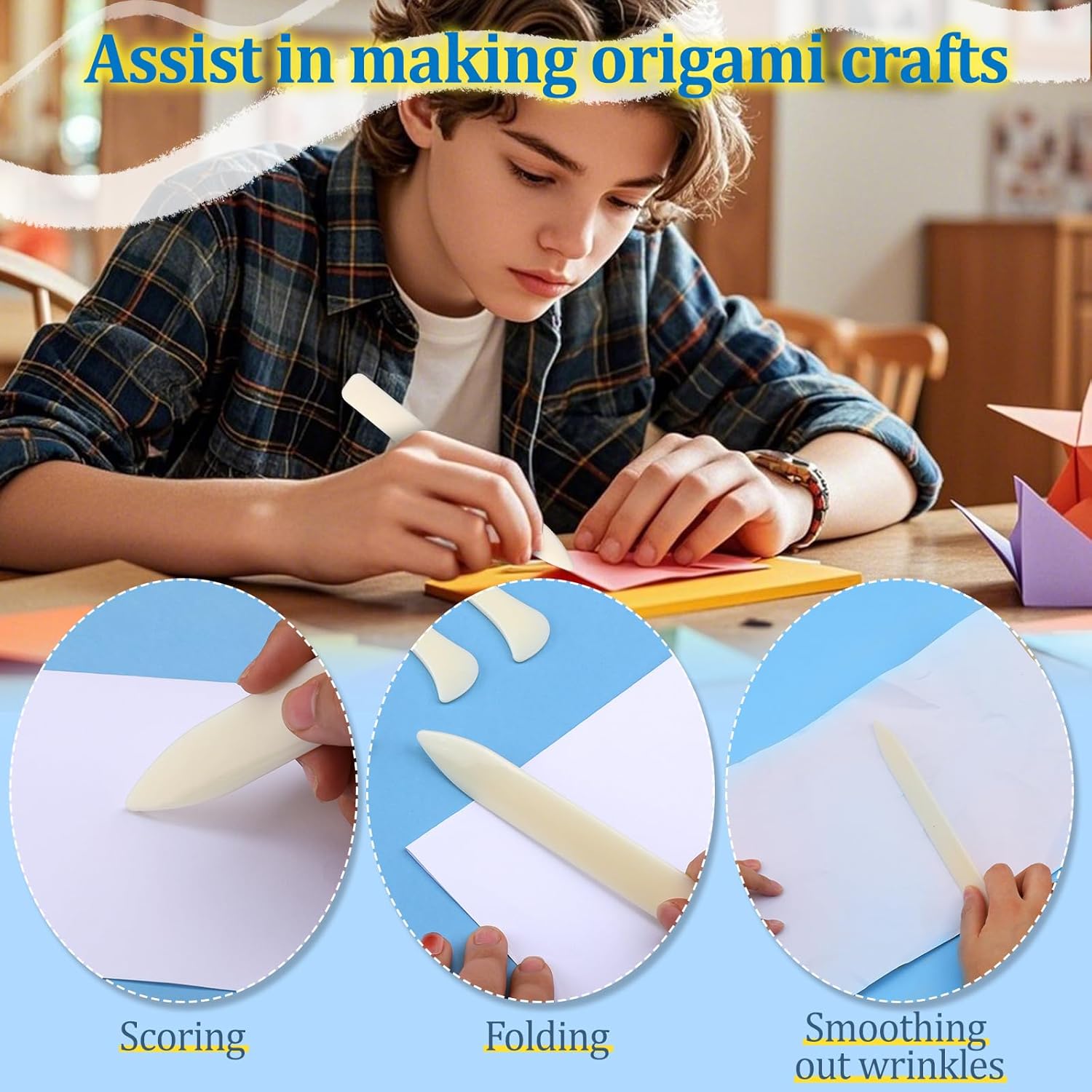 - Package Include -- The set includes 6 bone folders and 3 crease markers, with a pointed tip for precise creasing, scoring paper, and getting into tight corners, and a wide end for smoothing scored creases.