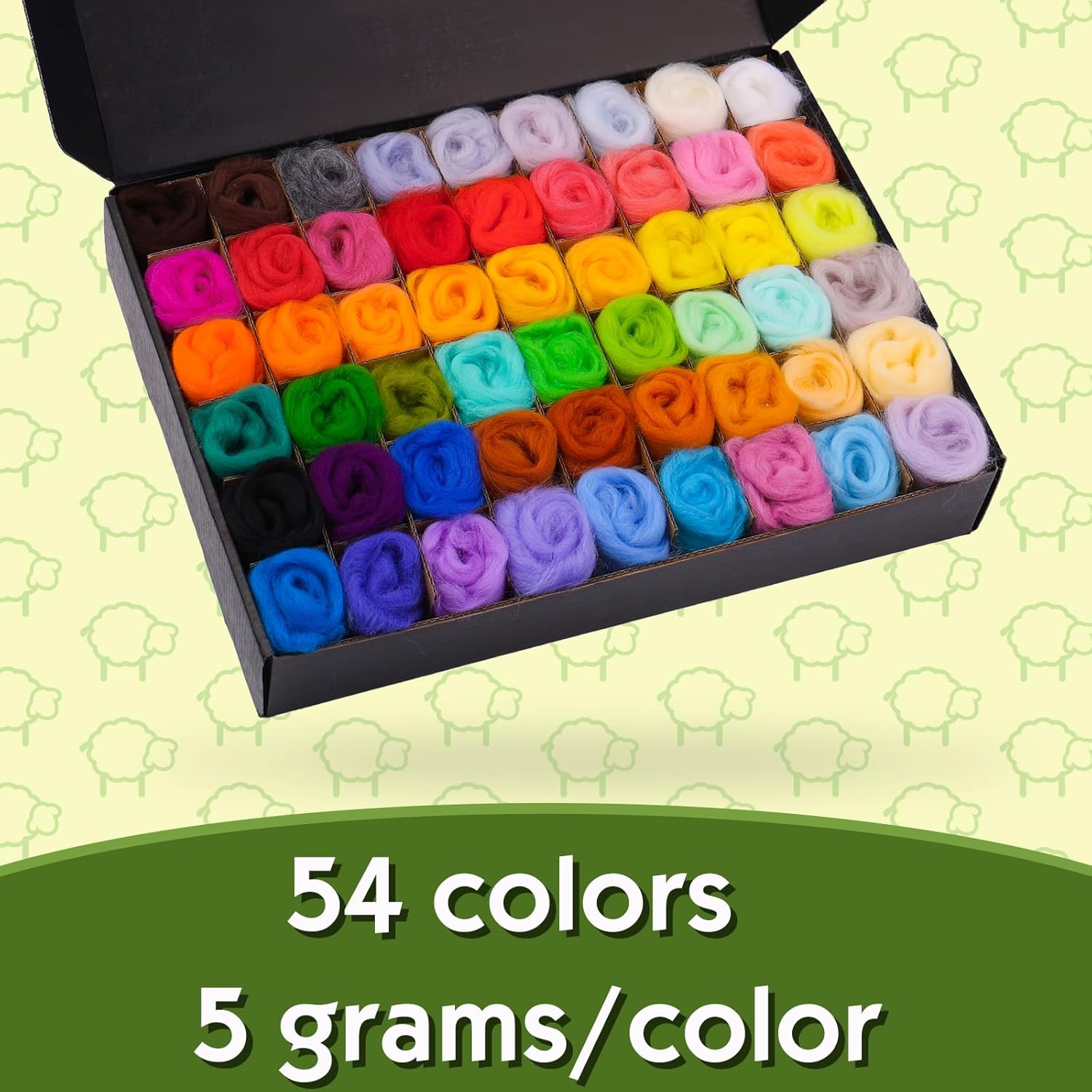 - 54 COLORS: This set of needle felting wool will come in a total of 54 different colors. It would be a good helper for your process of needle felting which allow you to select the colors that you really need from many different colors. And the storage box with compartments could help you to storage the wool in order