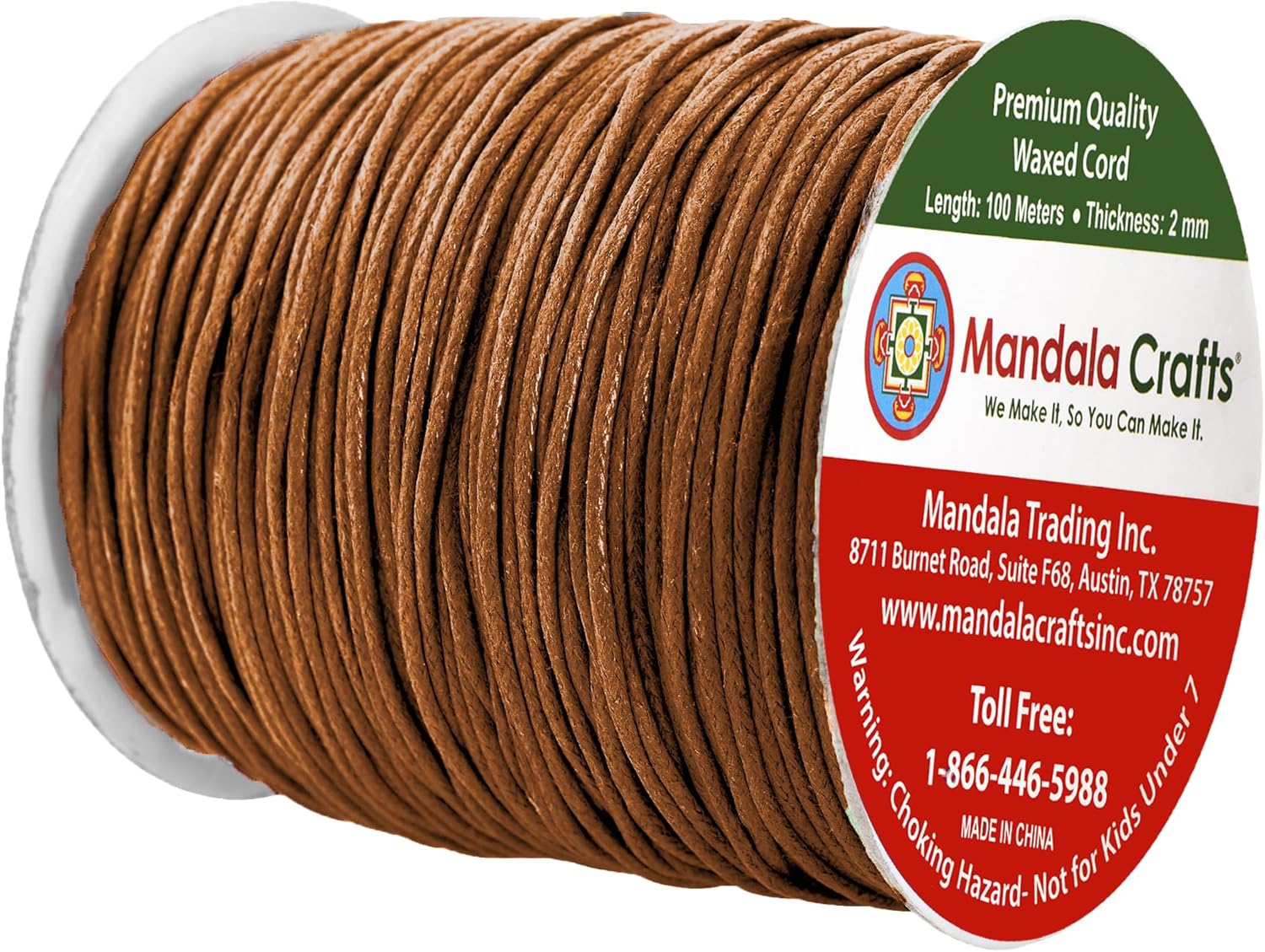 Mandala Crafts 2mm 109 Yards Russet Brown Cotton Waxed Cord for Jewelry Making Bracelet Cord Waxed String - Beading String Thread Jewelry Cords for Necklaces String