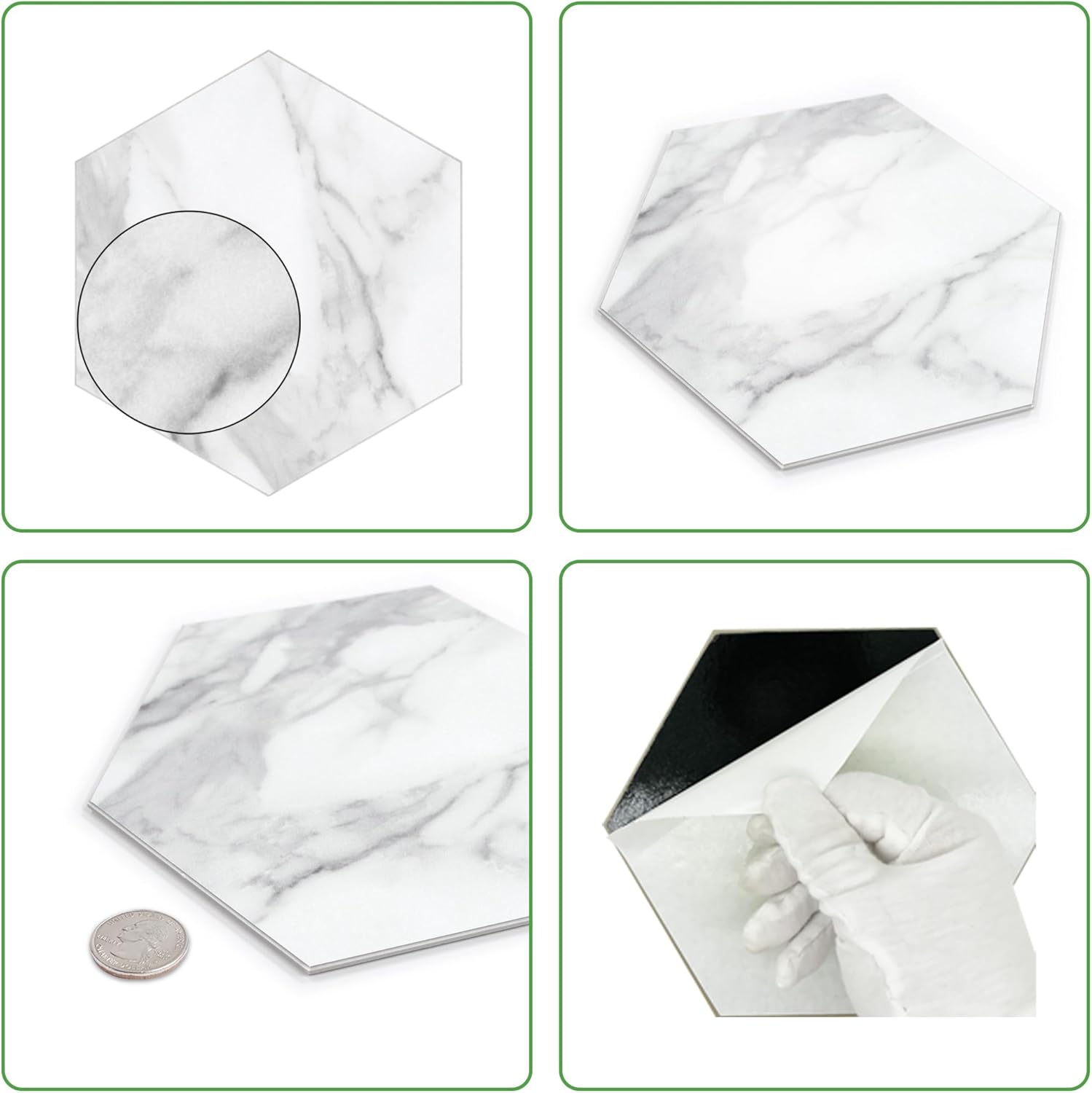 - MARBLE LOOKS TILE - This stone composite peel and stick tile creates a elegant and cozy ambiance in your home thanks to its marble-look appearance and attractive matte finish. It is so versatile that it works effortlessly with various decor styles and furniture colors.