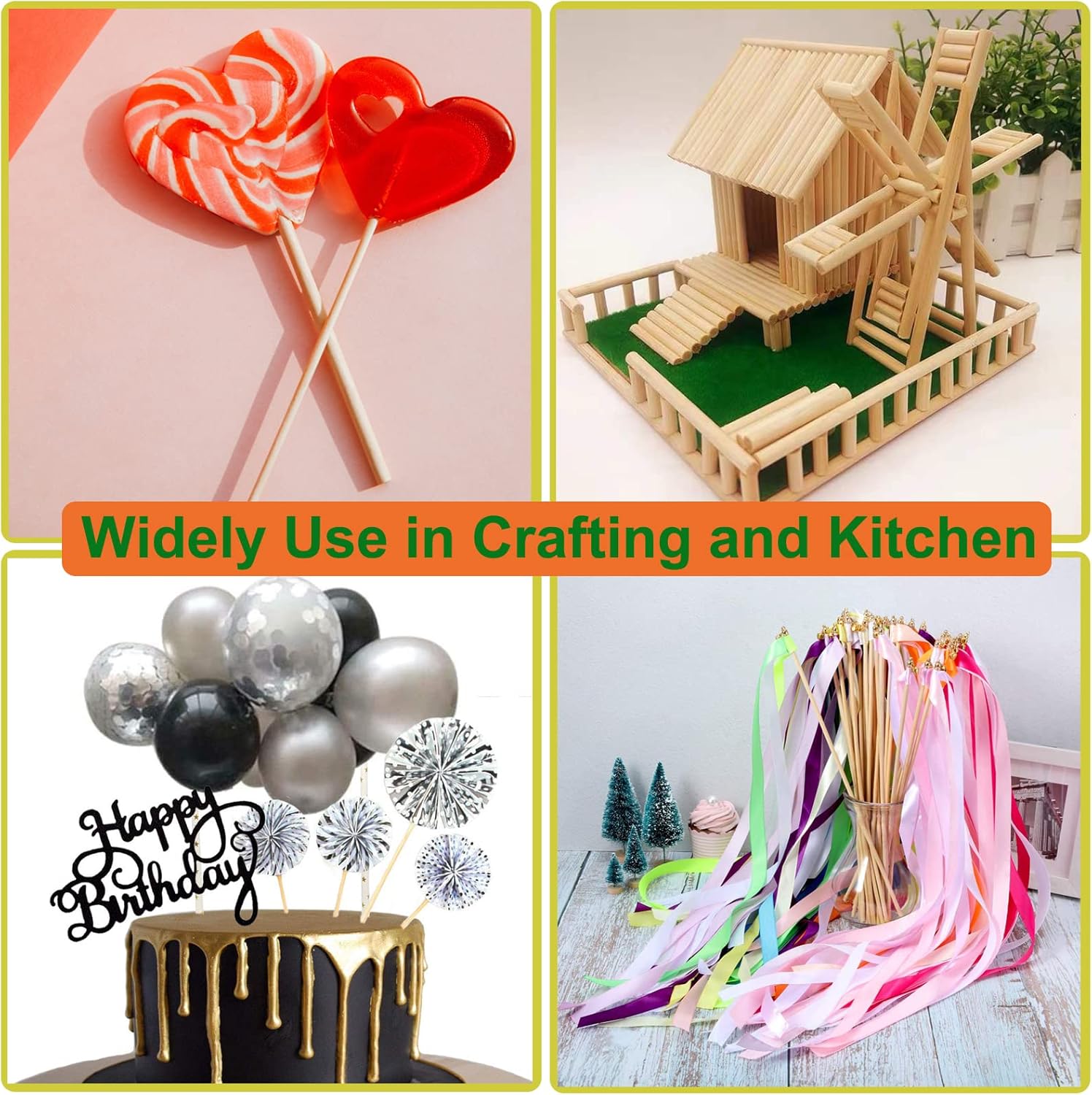 - QUALITY BIRCH WOOD----Our round hardwood dowel rods are made of light-toned birch wood. They are clean and unblemished. There is no need to worry about getting splinters or hurting yourself with these wooden.
