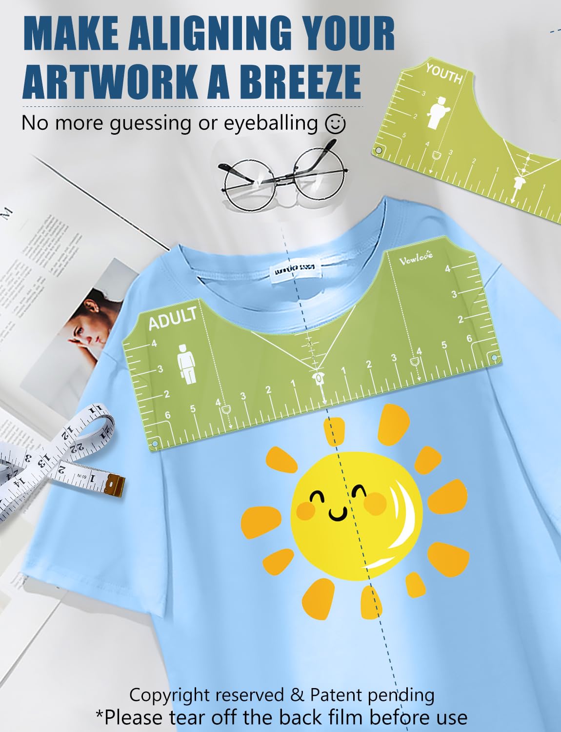 Vowlove Tshirt Ruler Guide for Vinyl Alignment - T Shirt Rulers to Center Designs Graphics Placement, Tee Shirt Measurement Ruler Heat Press Accessories Tool Sublimation Blanks HTV Heat Transfer Vinyl