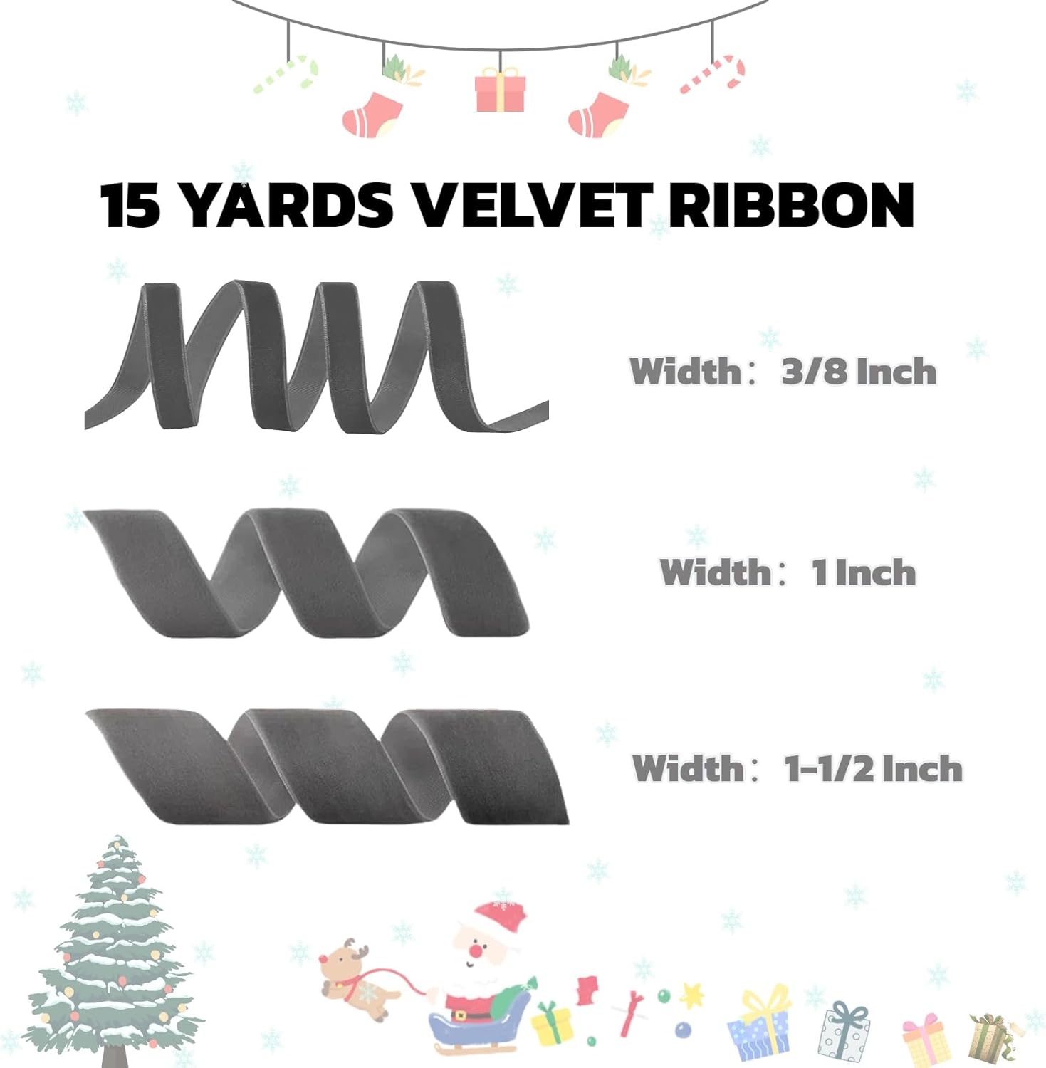 15 Yards Velvet Ribbon 1 Inch Single Face Grey Velvet Ribbon Spool Prefect for Wedding, Ribbons for Gift Wrapping, Vintage Christmas Decor Tree Ornaments Wreath Hair Bows, Ribbons for Crafts