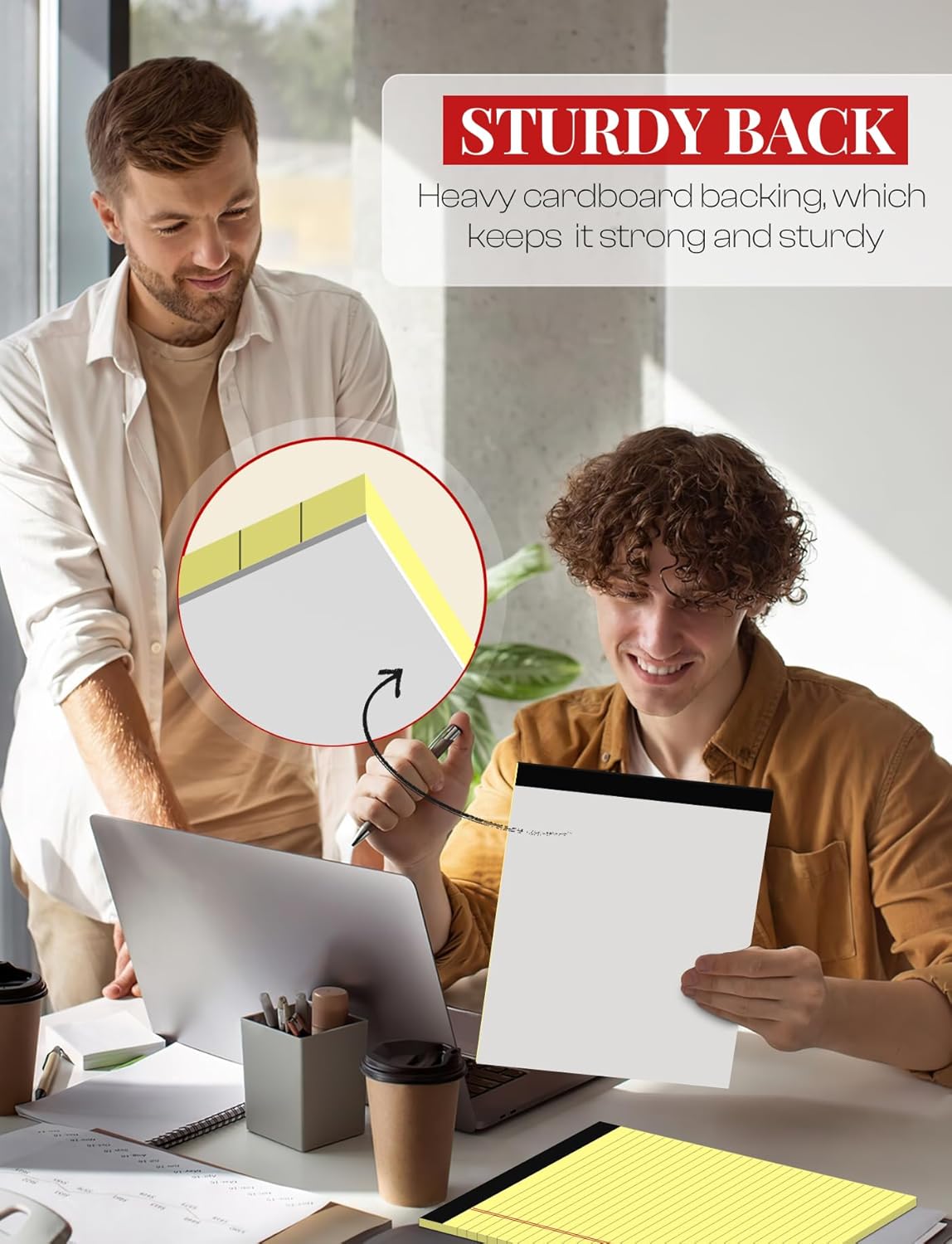 - [KEEP NOTES SECURE]: Each lined notepad 8.5 x 11 has black top bindings. The writing tablets 8.5 x 11 perforated top edge allows for easily and neatly removing individual sheet of paper. Pad of paper 8.5 x 11 has sturdy and resistant bindings keep the pages of crucial notes protected, your writing pad won't fall apart under pressure like some lesser notepads. Paper tablets 8-1/2 x 11 features a thick and strong cardboard backing for extra support when writing thicker than standard legal pads.