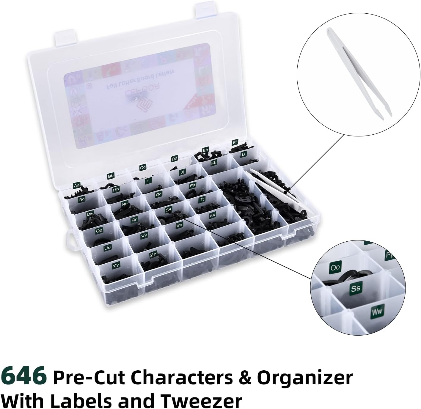 Felt Letter Board Letters,PRE-Cut Characters with Sorting Tray,Felt Board Letters (1 Inch Plus Black)