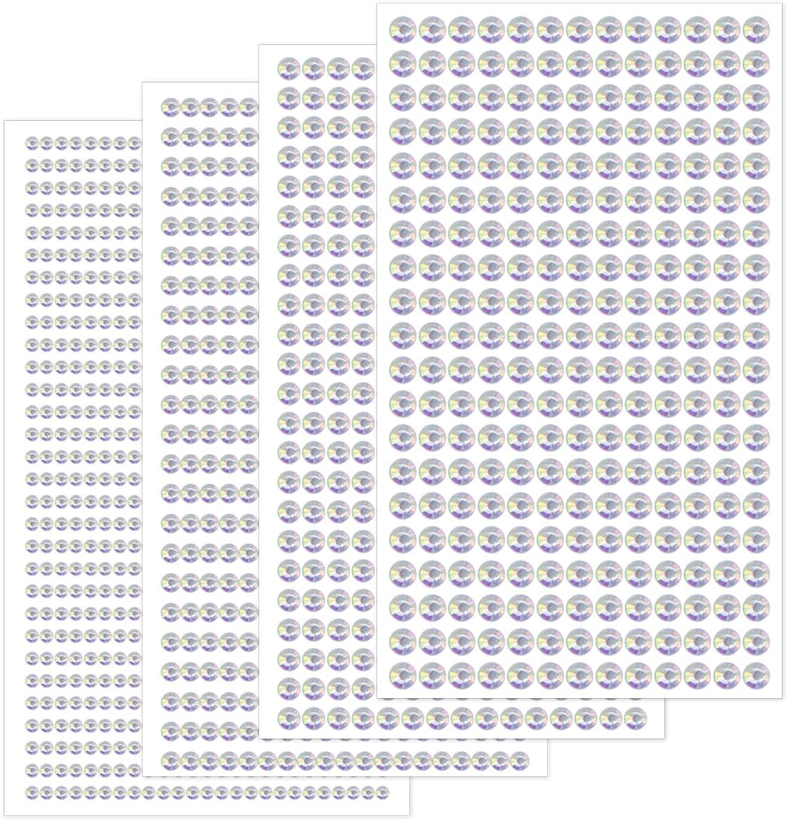 - ăSet IncludesăPackage contains 4 sheets of self-adhesive diamond stickers, including 750pcs 3mm, and 437pcs 4mm, 352pcs 5mm, 260pcs 6mm. You will look more charming and gorgeous with these shimmering face body gems.