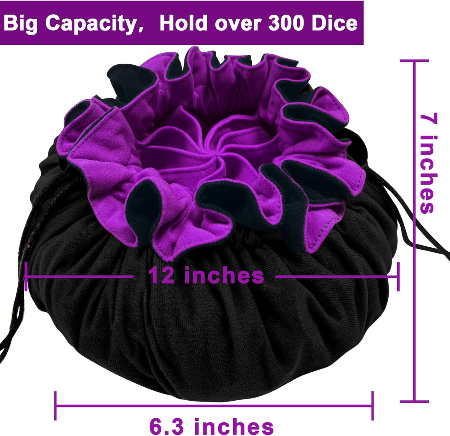 - Big Capacity - the dnd dice bag dimension is round base 160mm(6.3 inch) x round opening 300mm(11.87 inch) x height 180mm(7.0 inch), large capacity dice bag can hold over 300 pcs normal size polyhedral dices