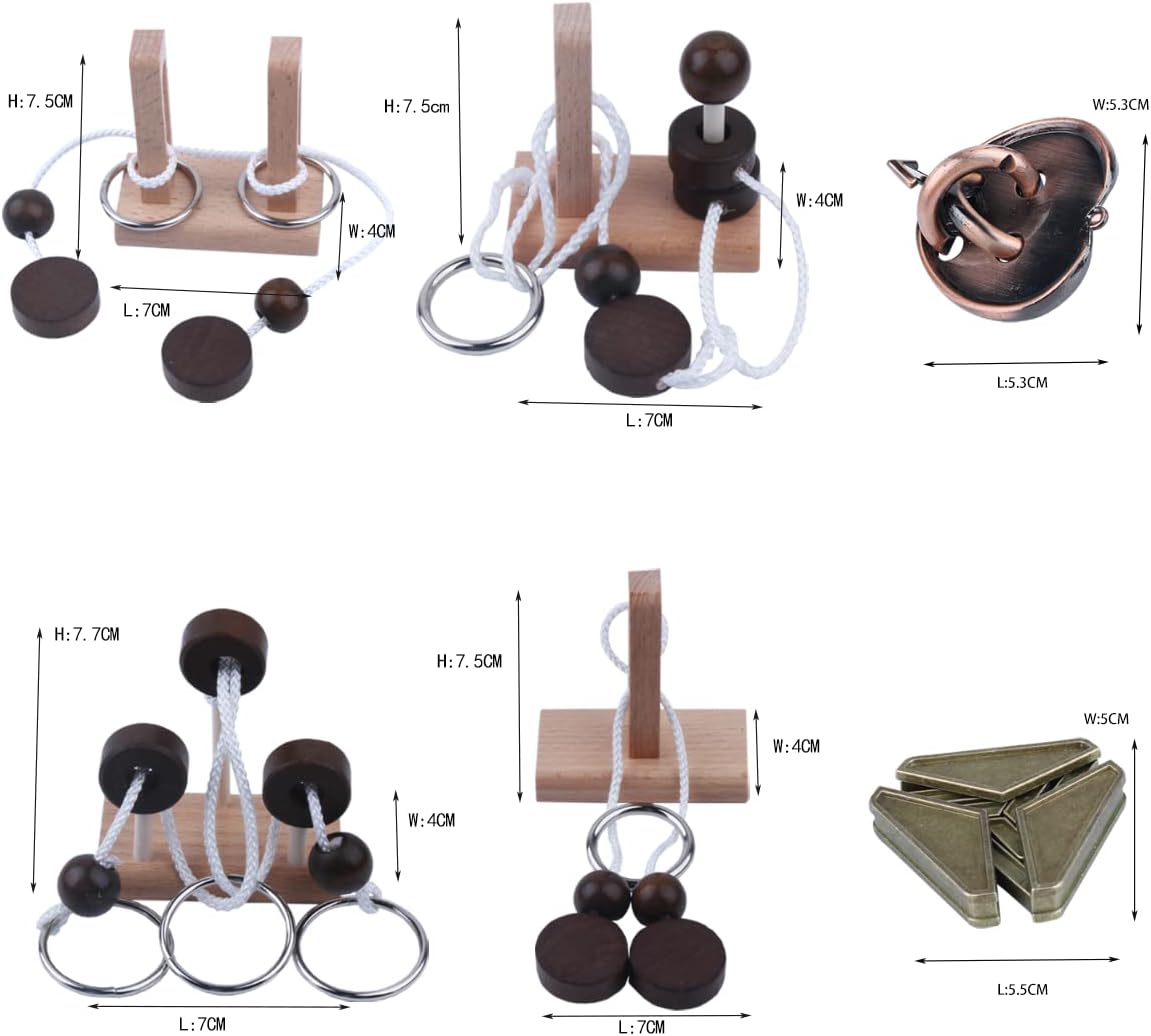 Wooden and Metal 3D Unlock Interlock Assorted Brain Teasers Puzzles,IQ Logic Training Family Game Party Favor Coffee Table Time Unlock Interlock Mind Puzzles Box