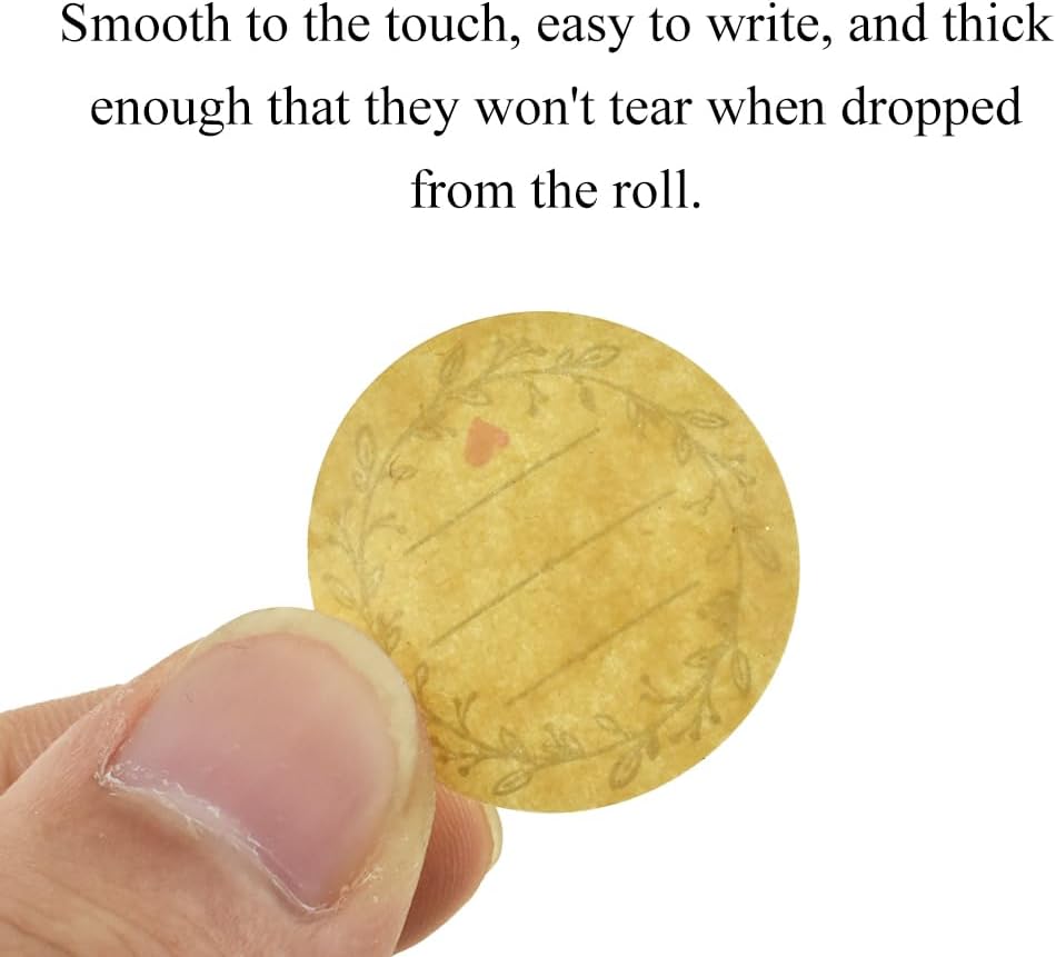 - High quality: Our stickers are made of high-quality kraft paper, which is smooth to the touch, easy to write, and thick enough that they won't tear when dropped from the roll. The label and reel are 100% recyclable. Natural brown kraft sticker not only adds a personalized and rustic quality to your work, but also makes your work more prominent and impressive.