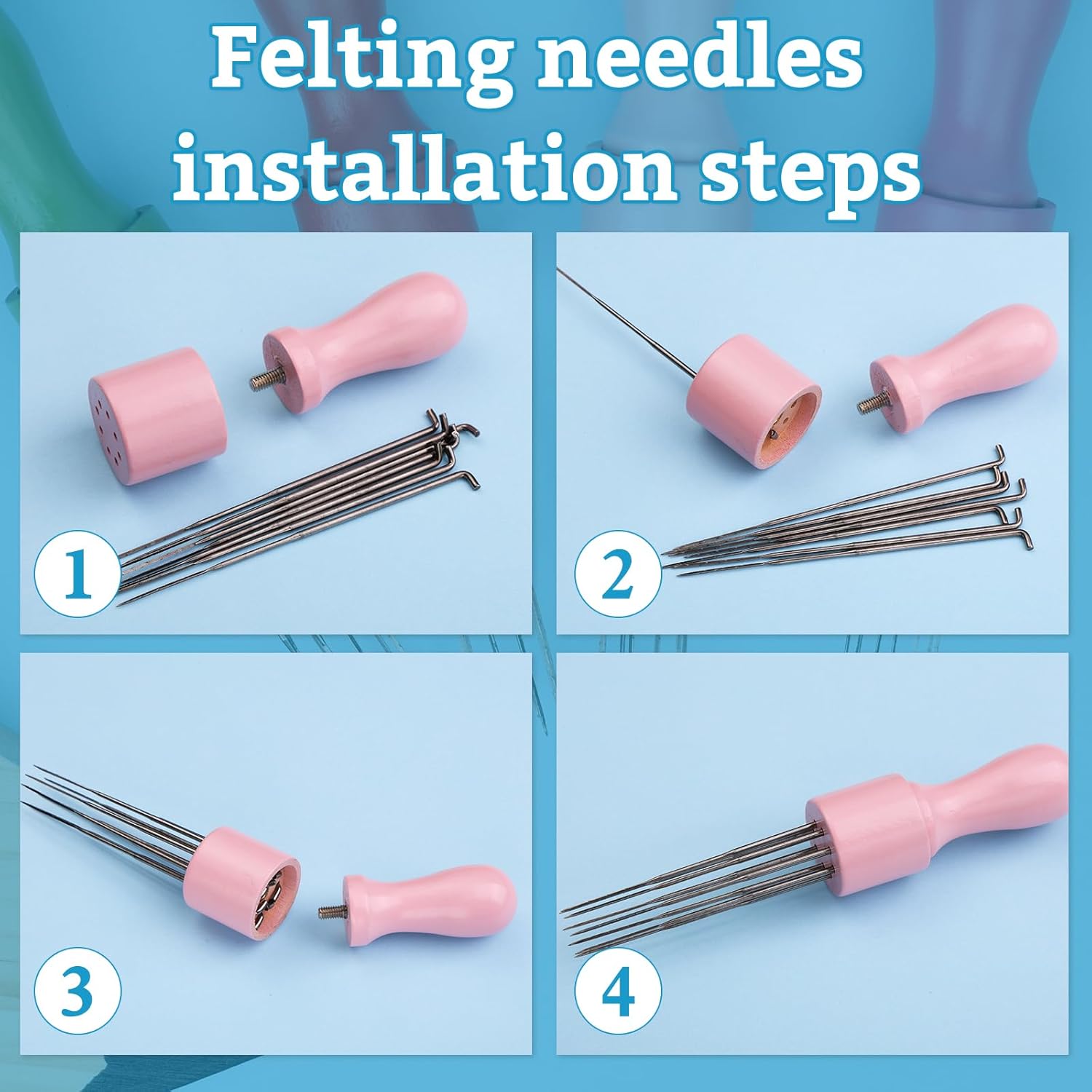 - 8-Needle Wooden Handle Tool: The wooden handle in this needle felt kit is wonderful for speeding up the process of needle felting. You can use 1 to 8 needles on it and it is comfortable and ergonomic in the hand and don't tend to slip.