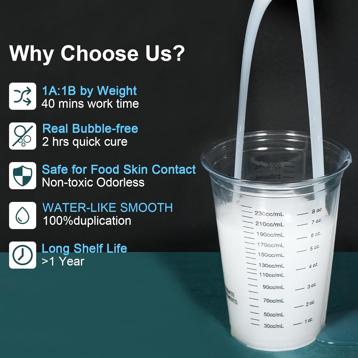 - 【No Bubbles】: No vacuum degassing is necessary! The bubbles of silicone for mold making will automatically disappear within 1.5 hours at room temperature due to its low viscosity(viscosity 1500) feature.