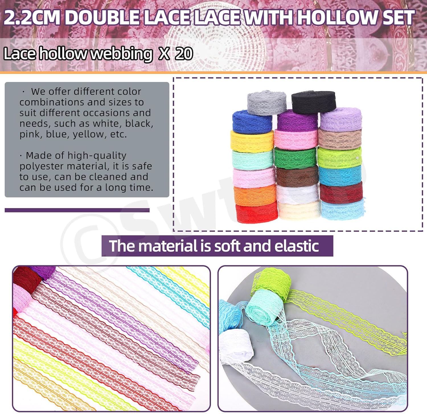 Swpeet 20 Rolls in Total 200 Yards 2.2cm×10 Yards Colorful Lace Ribbon Unilateral Floral Pattern Fabric Lace Ribbon, Lace Trim Ribbon Crafting Lace for Wedding Decorating, Sewing Gift Wrapping
