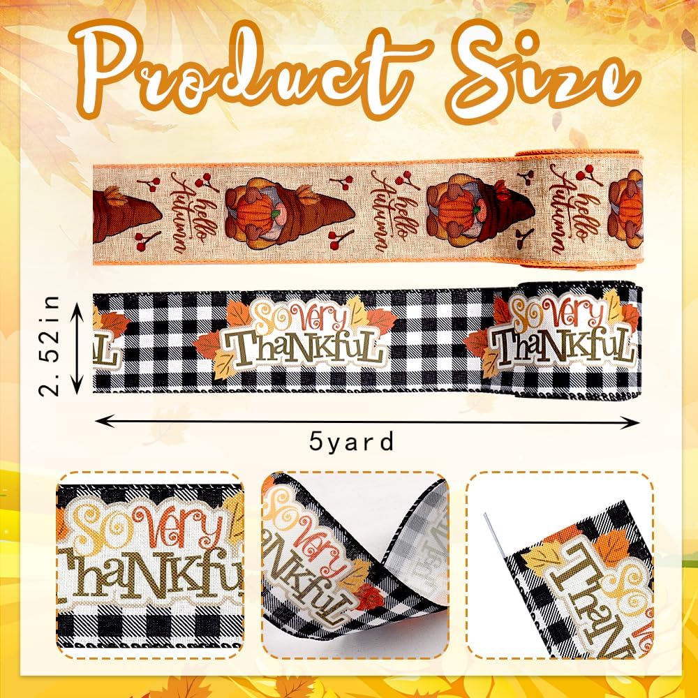 - Size and quantity: you will get 2 rolls fall ribbons(1 piece gnome ribbon,1 piece black white buffalo plaid ribbon), each fall decorative ribbon measures approx. 2.5 inches in width approx. 5 yards in length, so you will get a total 10 yards wired edge ribbons, long enough to satisfy your decorative needs and gift wrapping purposes.