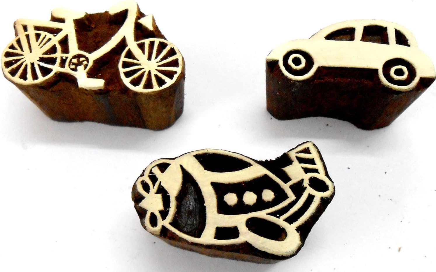 Car Bicycle Plane Wooden Blocks Stamps for Printing on Textiles, Pottery Crafts,Henna, Scrapbooking (Set of 3)