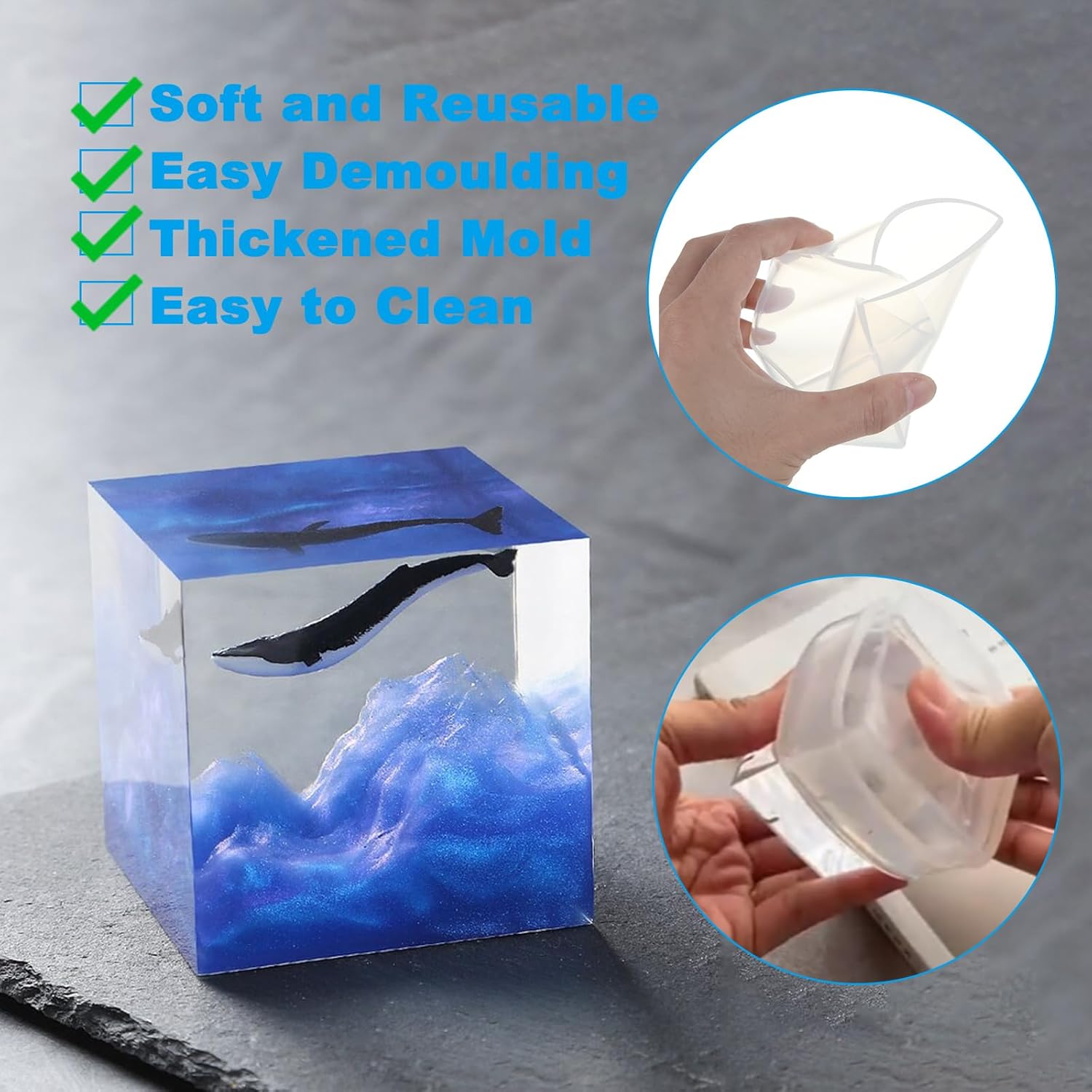 - Strong Compatibility: The silicone molds are compatible with various casting materials, especially epoxy resin, casting resin, and UV resin. However, they are not suitable for coating resin. You can also use these molds with materials like gypsum, wax, soap, polymer clay, and more