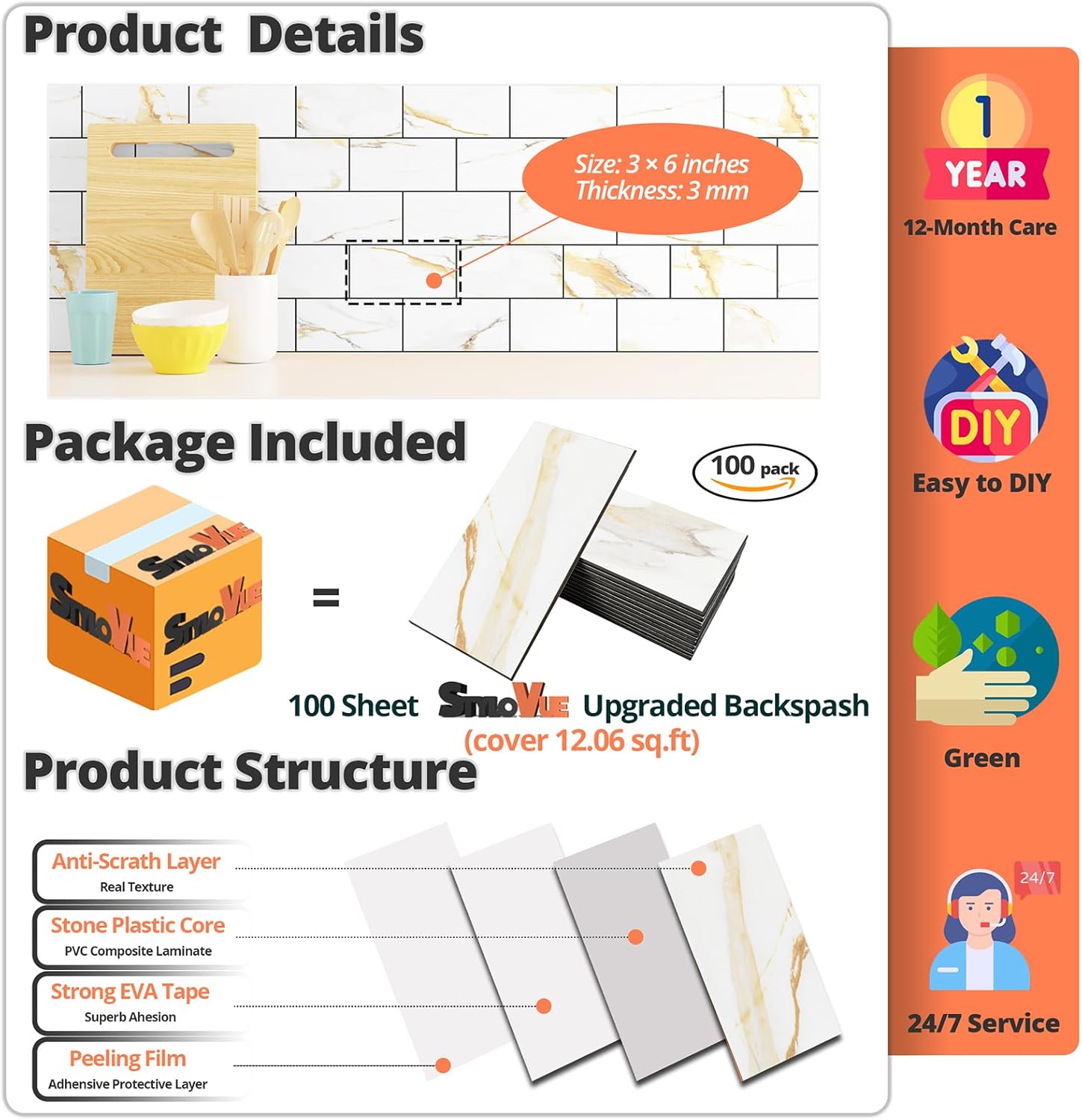 - ๐๐ซ๐๐ฆ๐ข๐ฎ๐ฆ ๐๐๐ซ๐๐จ๐ซ๐ฆ๐๐ง๐๐: Our peel and stick wall tiles are designed with high-performance PVC polymer material, offering waterproof, heat-resistant, stain-resistant, anti-scratch, and fadeless properties. Rest assured, the super-strong adhesive ensures the tiles stay securely in place!