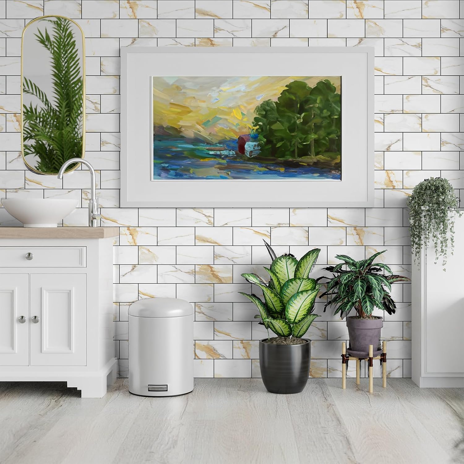 - ๐๐๐ซ๐ฌ๐๐ญ๐ข๐ฅ๐ ๐๐จ๐ฆ๐ ๐๐ฆ๐ฉ๐ซ๐จ๐ฏ๐๐ฆ๐๐ง๐ญ: Transform any space in your home with endless possibilities. Ideal for kitchen backsplashes, bathrooms, laundry rooms, RVs, campers, pantries, fireplaces, living room walls, and more, these tiles add a touch of elegance and style to every corner of your space.