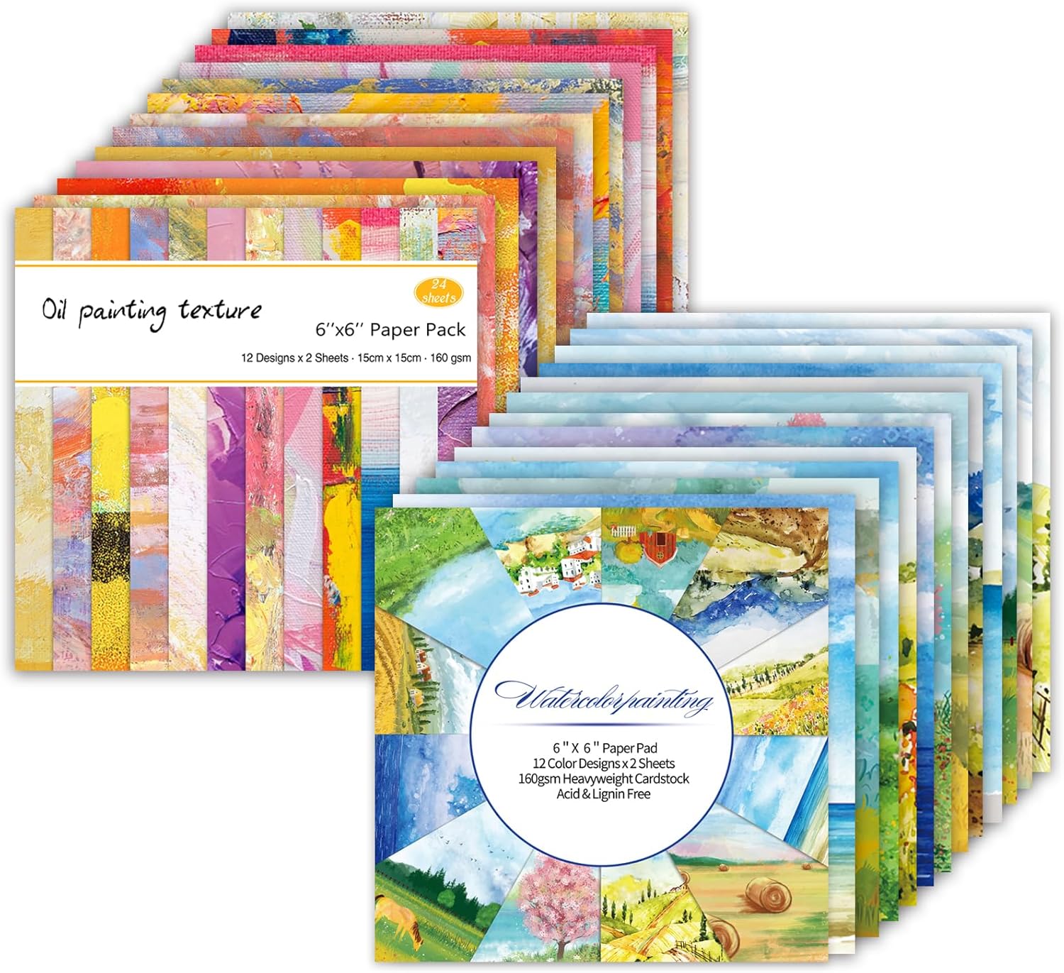 48 Sheets 24 Designs Scrapbook Paper Pad, 6"×6" Single-Sided Decopodge Craft Cardstock Paper,Scrapbooking DIY Decorative Background Cardmaking Supplies.Oil Painting&Landscape